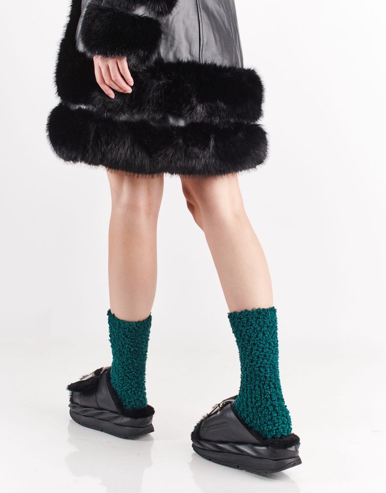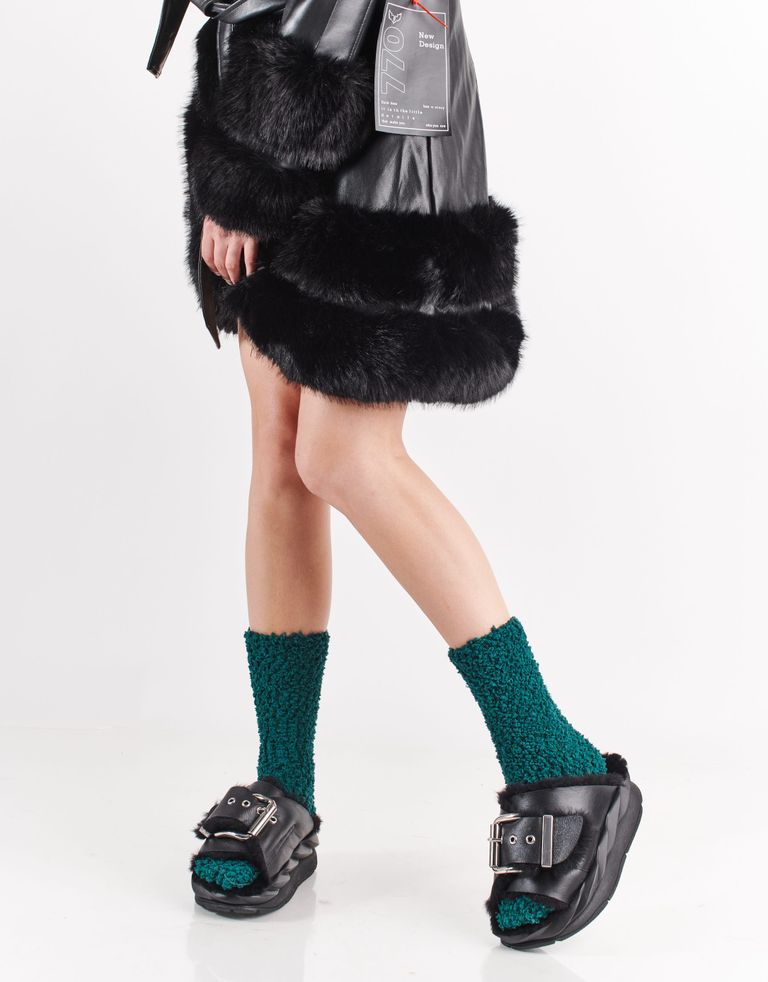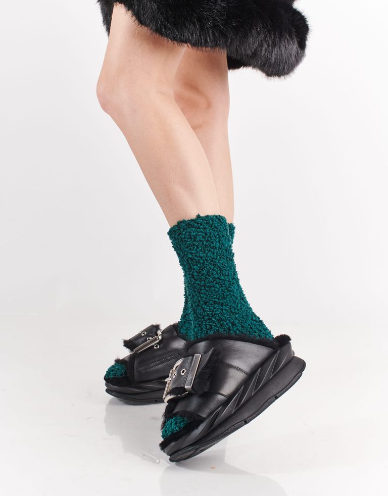 כפכפי סלייד עשויים עור עם בטנת פרווה פלאפית ונעימה, פתרון מעולה לחורף הישראלי. לכפכפים רפידה עם בליטה בצורת יהלום – פטנט ייחודי של 4ccccees, במטרה לשמור על קשתות כף הרגל בעת ההליכה. בנוסף, סוליית פלטפורמה משתי שכבות: שכבה פנימית מ-PU בצפיפות נמוכה, מה שמבטיח בלימת זעזועים טובה. שכבה חיצונית מ-EVA – חומר עמיד וקל.