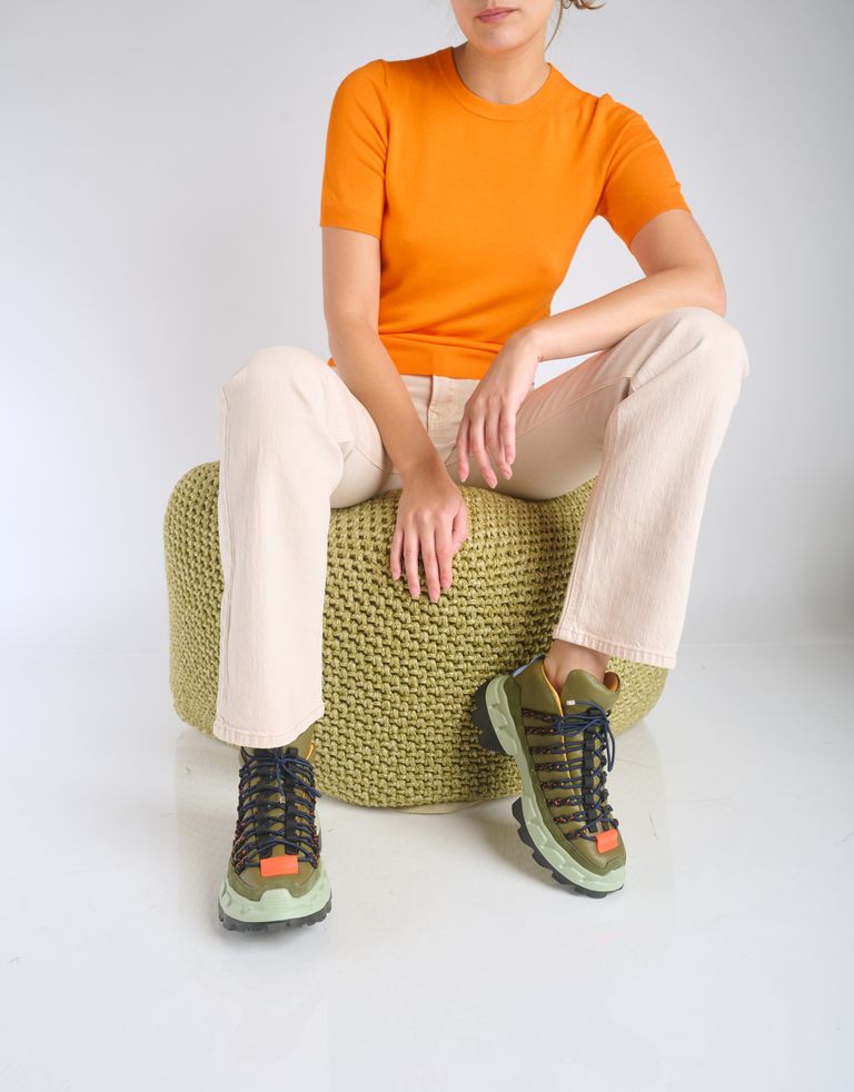 נעליים סגורות עם סוליה צ'אנקית. לנעליים רפידה ייחודית של המותג – בעלת בליטה בצורת יהלום, במטרה לשמור על קשתות כף הרגל. צפי לנוחות מקסימלית.