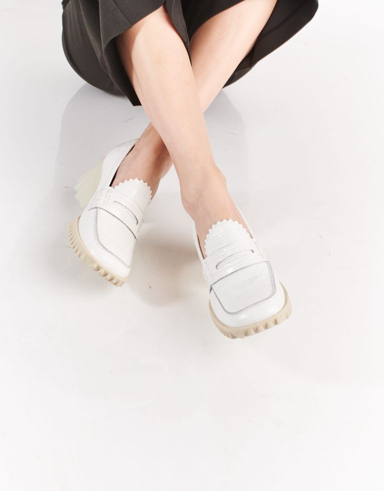 נעליים בסגנון מוקסינים, מפתיעות ומקוריות. עשויות עור בציפוי לכה עם עקב סיליקון ייחודי ושובה לב ורפידה פנימית עם בליטה בצורת יהלום – פטנט ייחודי של המותג במטרה לשמור על קשתות כף הרגל.