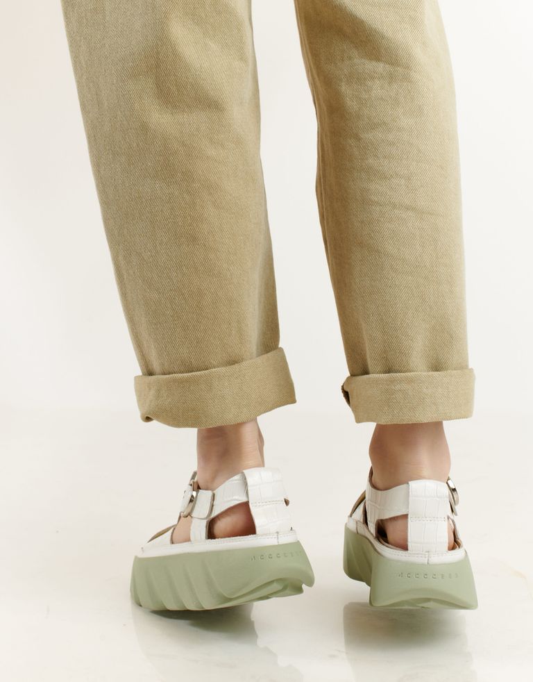 סנדלים סגורים קלי משקל עם סוליית פלטפורמה ורפידה עם בליטה בצורת יהלום – פטנט ייחודי של 4ccccees, במטרה לשמור על קשתות כף הרגל בעת ההליכה. וכמה שזה נוח.