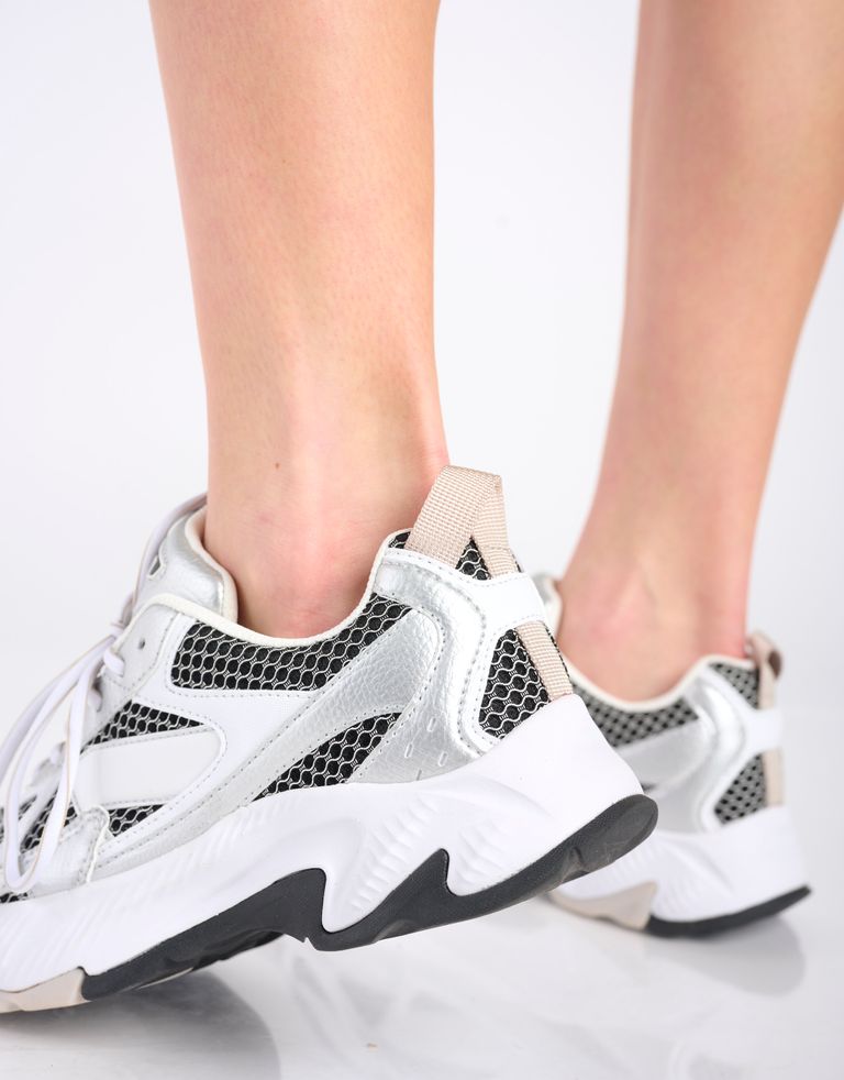 סניקרס טבעוניות מבד רשת נושם בשילוב חומר דמוי עור וסולייה גמישה ותומכת. הבשורה: נעליים קלות וסופר נוחות.