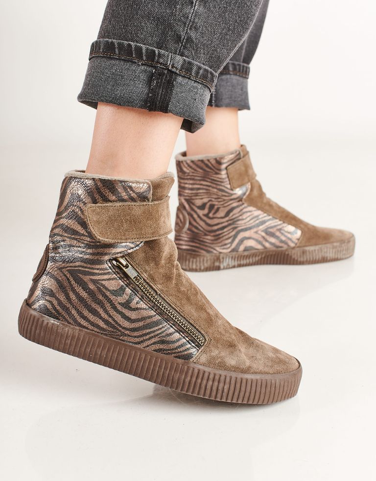 מגפונים שטוחים לנשים, עשויים זמש והדפס חייתי, נסגרים באמצעות סקוטש ורוכסן. בפנים – בטנה נעימה במיוחד, כזאת שלא תרצי להוציא את הרגליים ממנה, גם בבית.