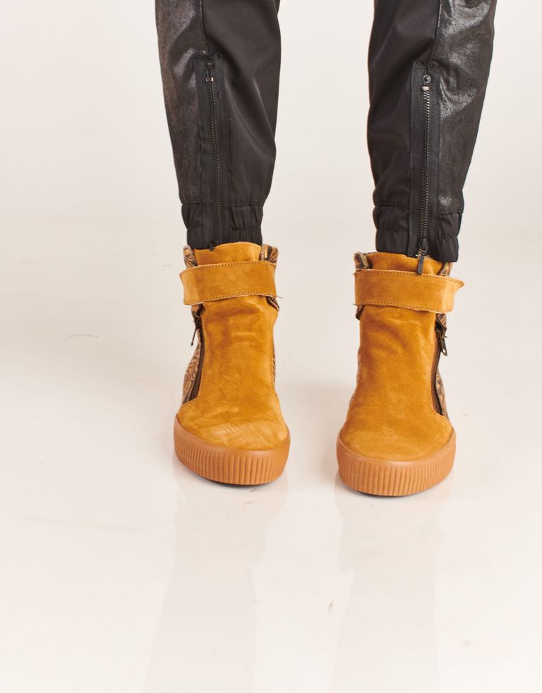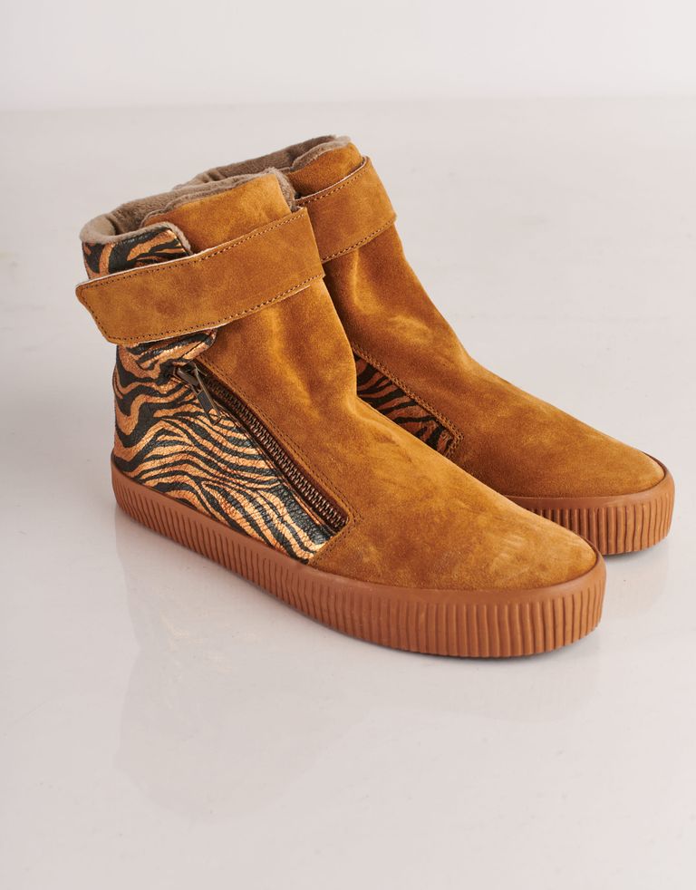 מגפונים שטוחים לנשים, עשויים זמש והדפס חייתי, נסגרים באמצעות סקוטש ורוכסן. בפנים – בטנה נעימה במיוחד, כזאת שלא תרצי להוציא את הרגליים ממנה, גם בבית.