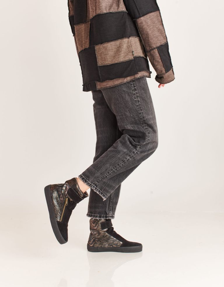 מגפונים שטוחים לנשים, עשויים זמש והדפס חייתי, נסגרים באמצעות סקוטש ורוכסן. בפנים – בטנה נעימה במיוחד, כזאת שלא תרצי להוציא את הרגליים ממנה, גם בבית.