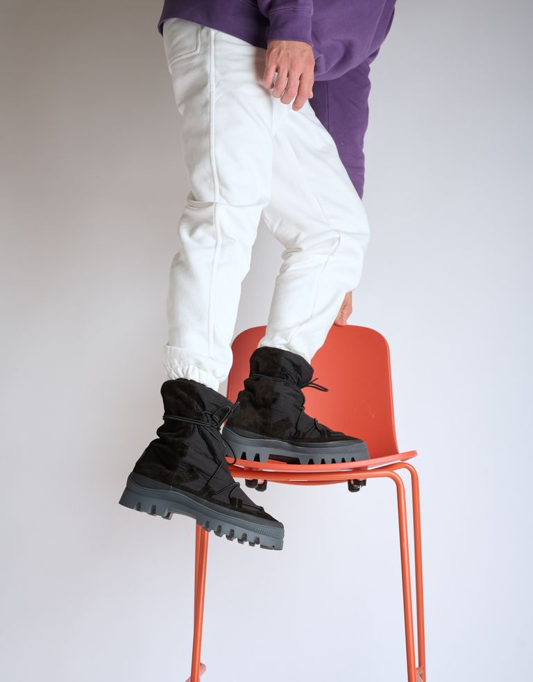 מגפיים גבוהים עם סוליות טרקטור במראה שישר זורק אותנו לארצות רחוקות וקרירות. שילוב של בד ניילון ,זמש ושרוכי גומי להתאמה אישית מקסימלית. נתראה בזוהר הצפוני.