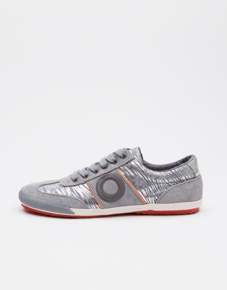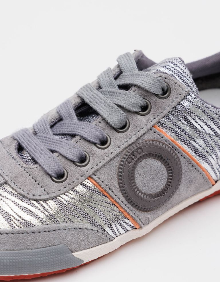 סניקרס קיציות בגרסת הדפס בד מנצנץ. הנעליים עשויות עור בשילוב בד ושרוכי כותנה.