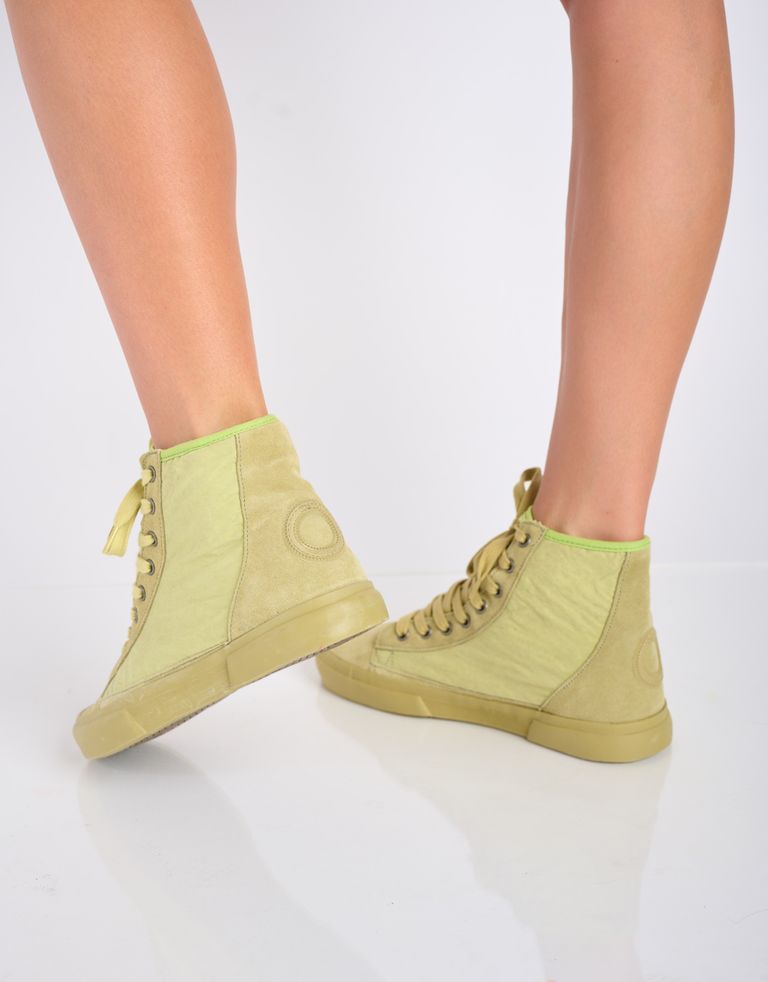 נעלי סניקרס היי-טופ, נעימות ומחממות. לנעליים מפתח רחב באזור הקרסול הניתן לכוונון אישי בעזרת שרוכים, הכי פרי-סטייל שיש.