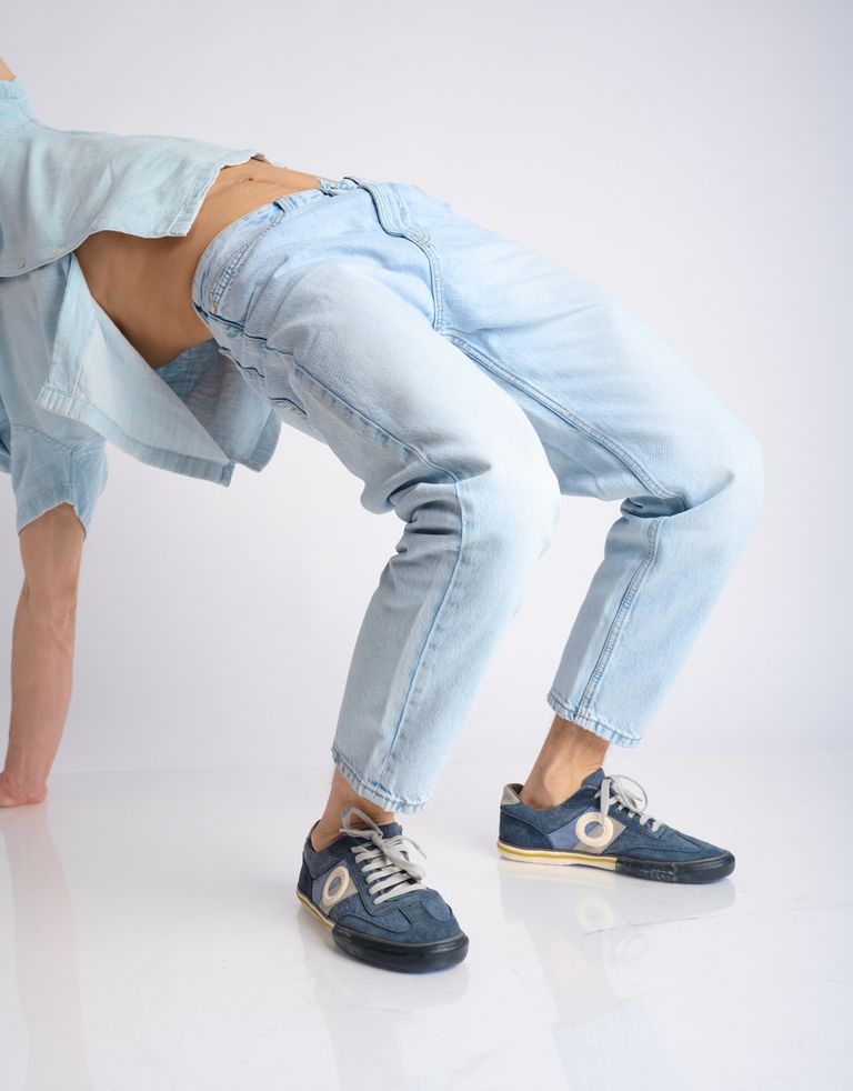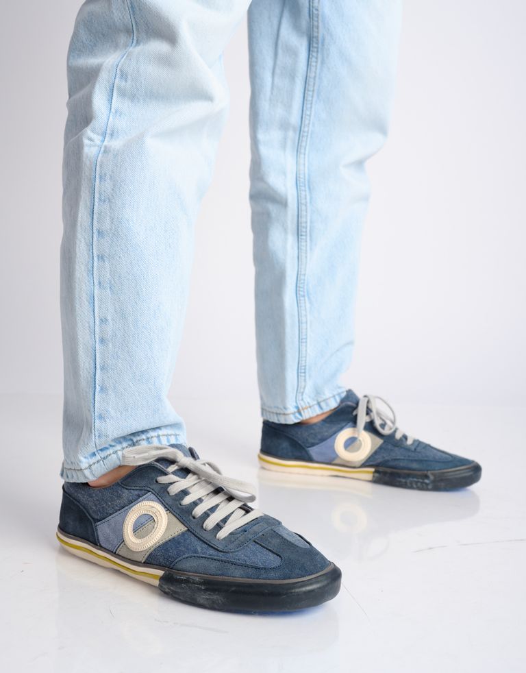 נעלי סניקרס נמוכות עשויות מזמש ומבד ג'ינס בשילוב צבעים מושלם. ארוזות בסגנון רטרו, היישר מברצלונה.
