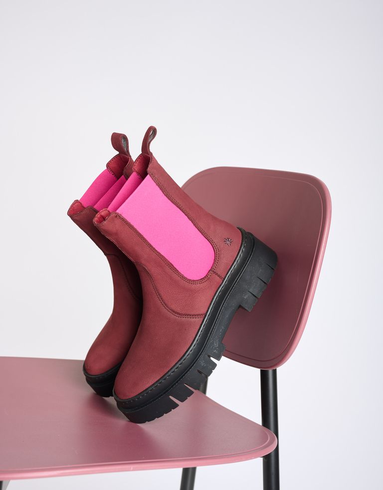 מגפי צ'לסי צבעוניים, עשויים עור בתוספת גומי אלסטי וסוליית טרקטור.