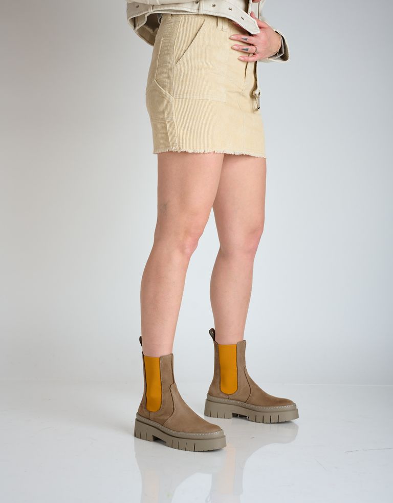 מגפי צ'לסי צבעוניים, עשויים עור בתוספת גומי אלסטי וסוליית טרקטור.
