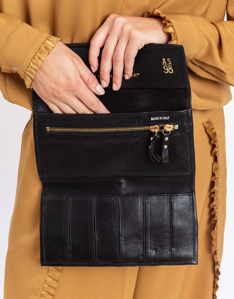 לא מצליחה להכריע בין ארנק לקלאץ'? ארנק עור גדול של A.S.98 נולד בדיוק בשביל זה – הוא מרווח ולא צריך להתקמצן על פיצ'יפקעס, ומצד שני עדיין בגודל שאפשר להכניס בקלות לתיק.