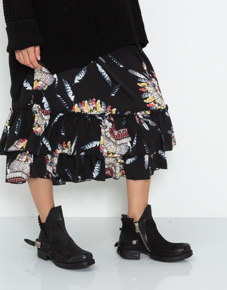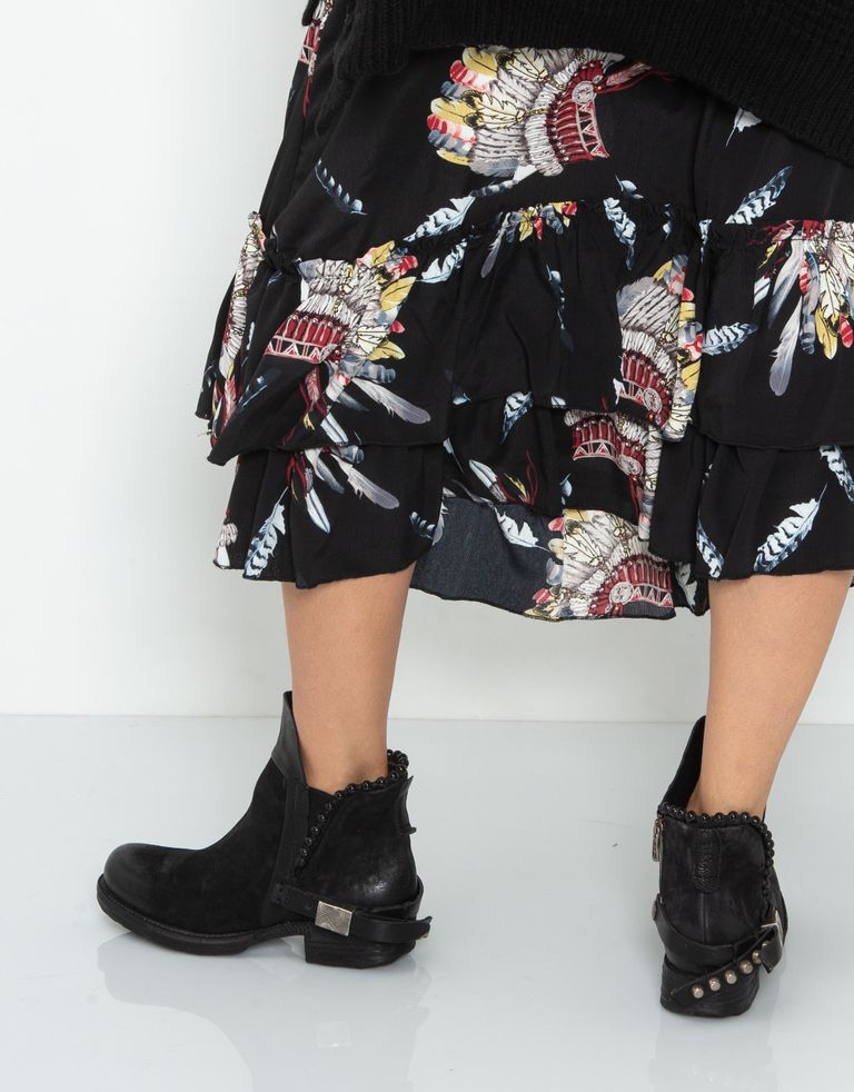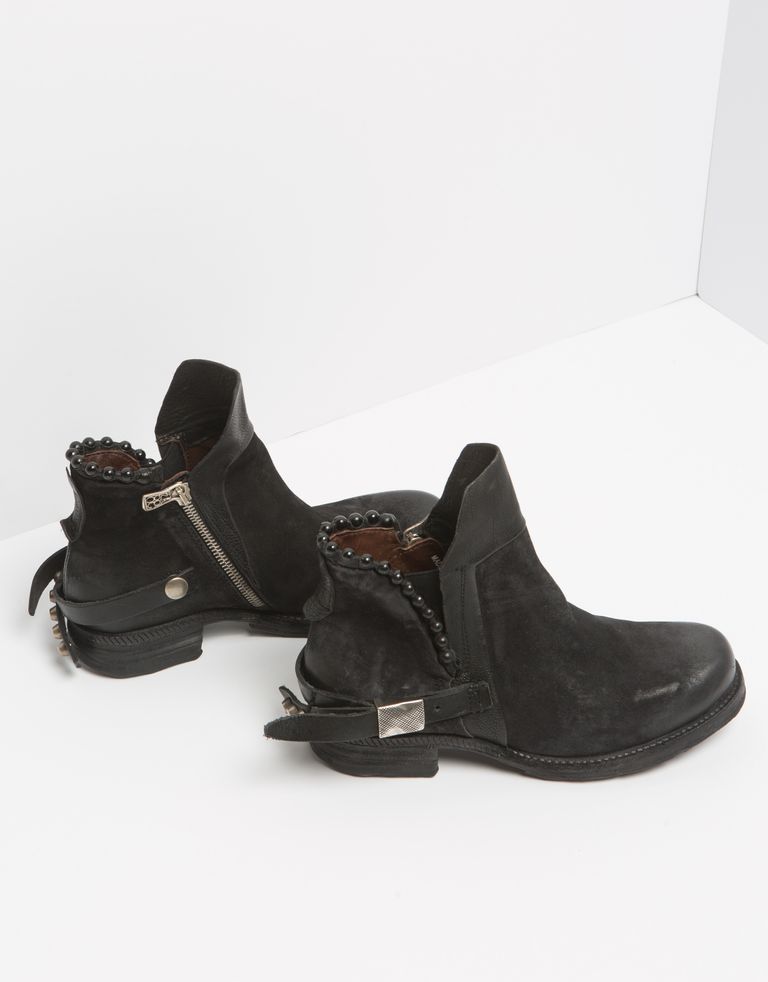 מגפוני קרסול בתוספת חרוזים ואבזם נמוך. לנעליים רוכסן פנימי המאפשר נעילה נוחה.