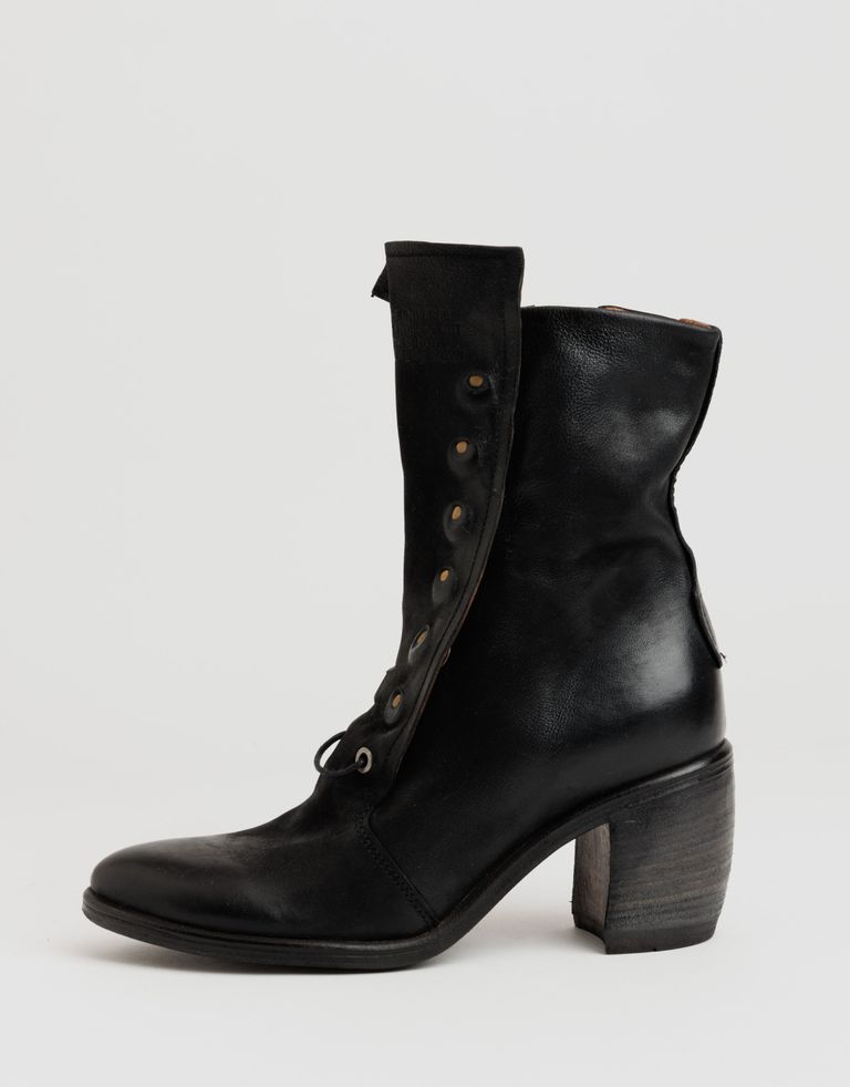 מגפוני עור בעיצוב מוקפד עם כפתורי תיקתק בסגנון וינטג' ורוכסן צד לנעילה נוחה.
