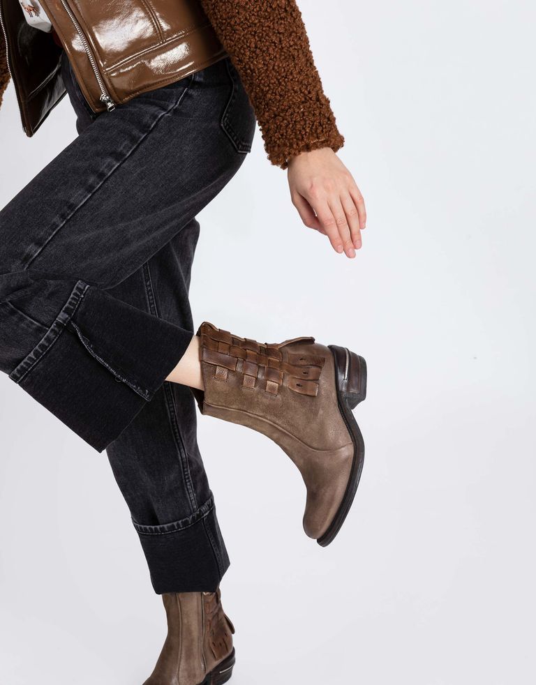 מגפוני עור עם אריגת שתי וערב של רצועות עור על הגפה, והתוצאה? קמצוץ מגפי בוקרים, נגיעה של בוהו-שיק וזוג שפשוט יושב טוב עם הבגדים.