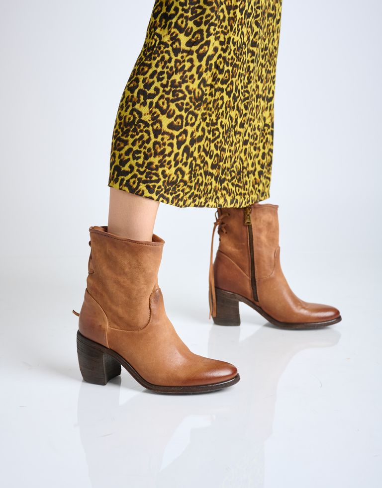 מגפיים גבוהים עם עקב רחב. המגפונים עשויים עור ומיוצרים בבית המלאכה המוקפד של A.S 98 באיטליה.