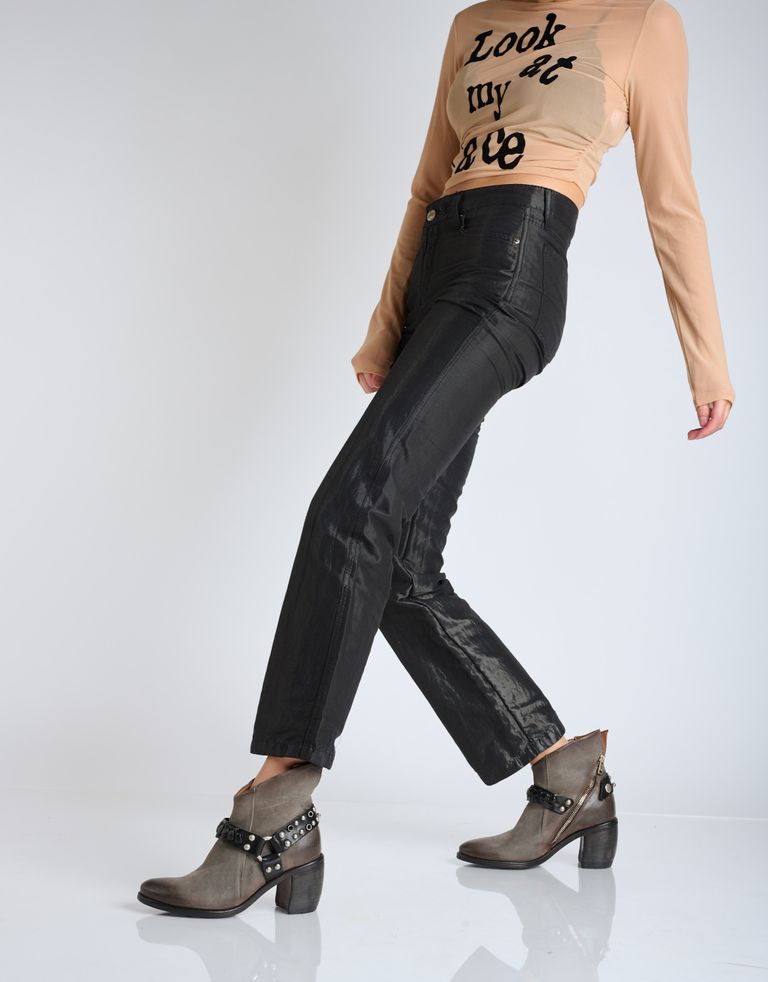 מגפונים מעור בסגנון בוקרים עם חיתוך קרסול מחמיא וחרטום מעוגל. הרצועות, הניטים והאבזמים ייקחו אותך למערב הפרוע והעקב הרחב מבטיח שגם במסע האופנתי שלך – תעמדי יציבה.