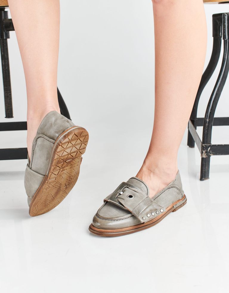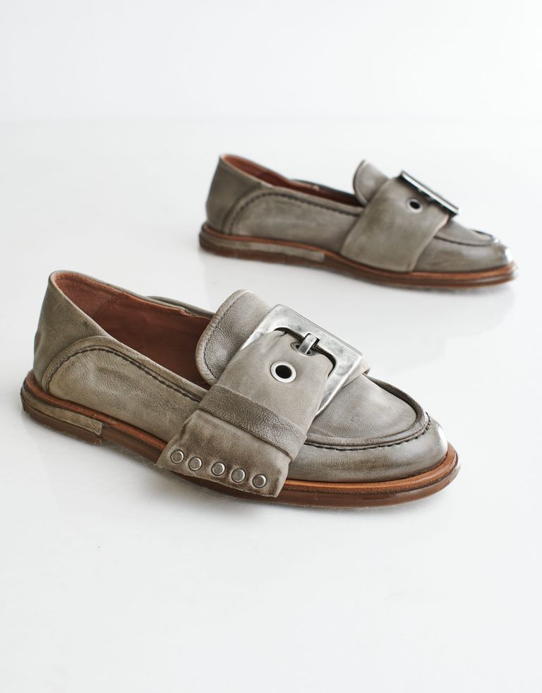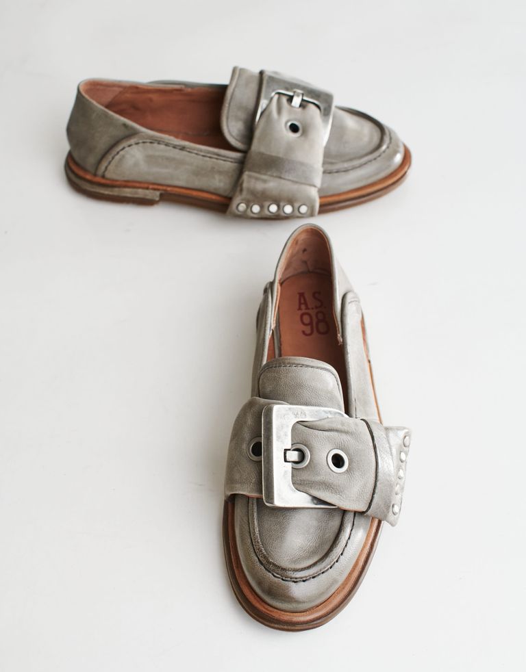 נעלי עור שטוחות עם דיטייל של אבזם מוגדל. נעלי המוקסין מיוצרות בבית המלאכה המוקפד של A.S 98 באיטליה.