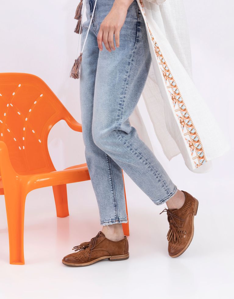נעלי עור לנשים עם שרוכים ZEPORT, מאובזרות בגדילים ודוגמת תיפורים, דיטיילז שמדגישים את הזהות הבוהו-שיקית המתבקשת. זרוק, אבל בצורה סופר מוקפדת.
