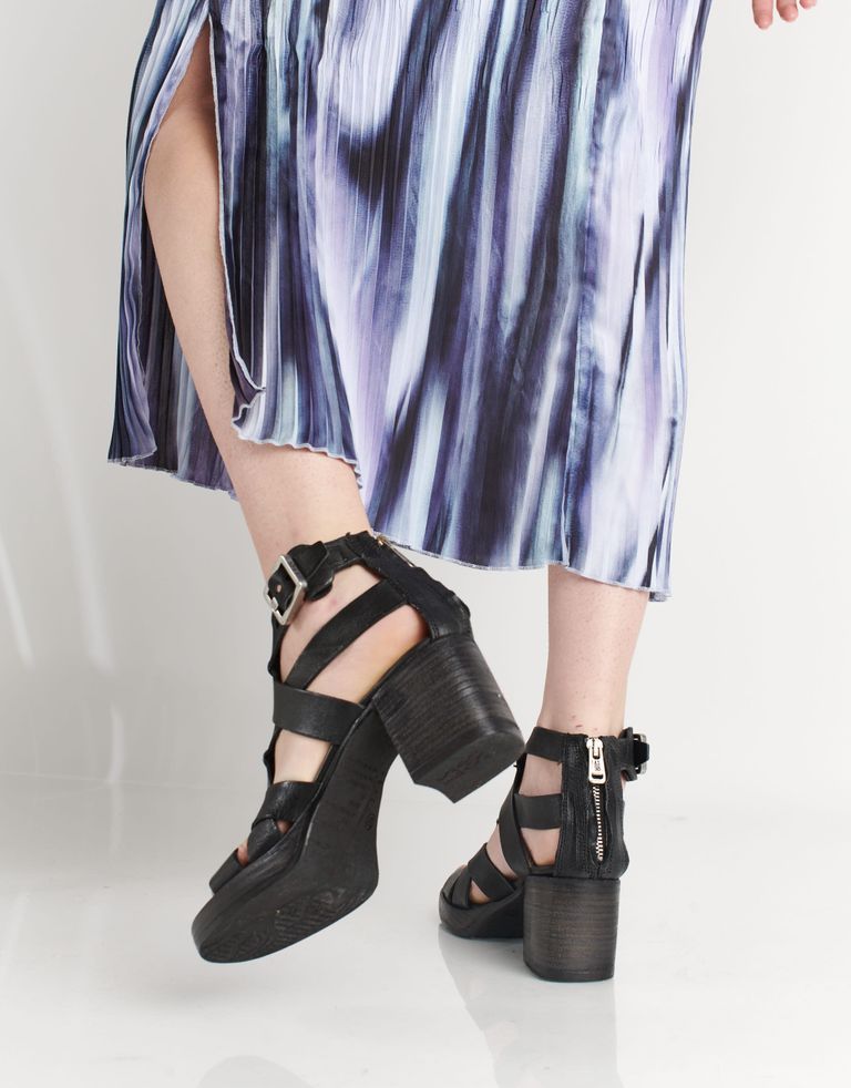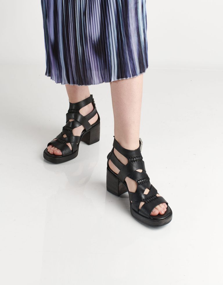 סנדלים שופעים ברצועות עד גובה הקרסול בעיצוב מפתיע ומחמיא. הסנדלים עשויים עור ומיוצרים בבית המלאכה המוקפד של A.S 98 באיטליה.