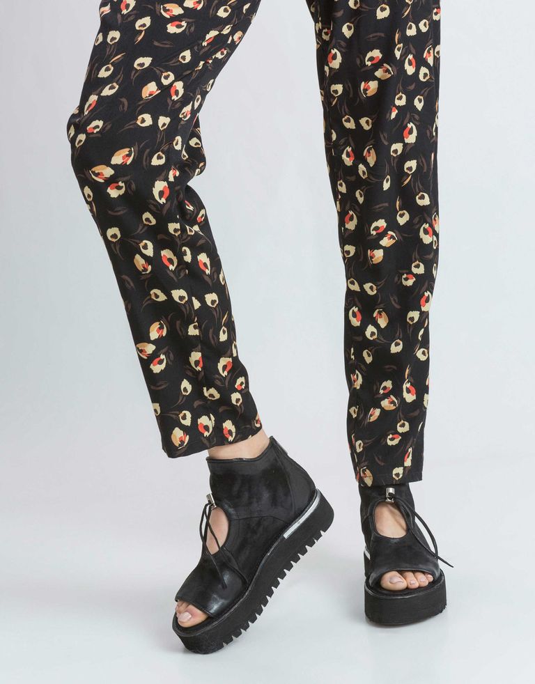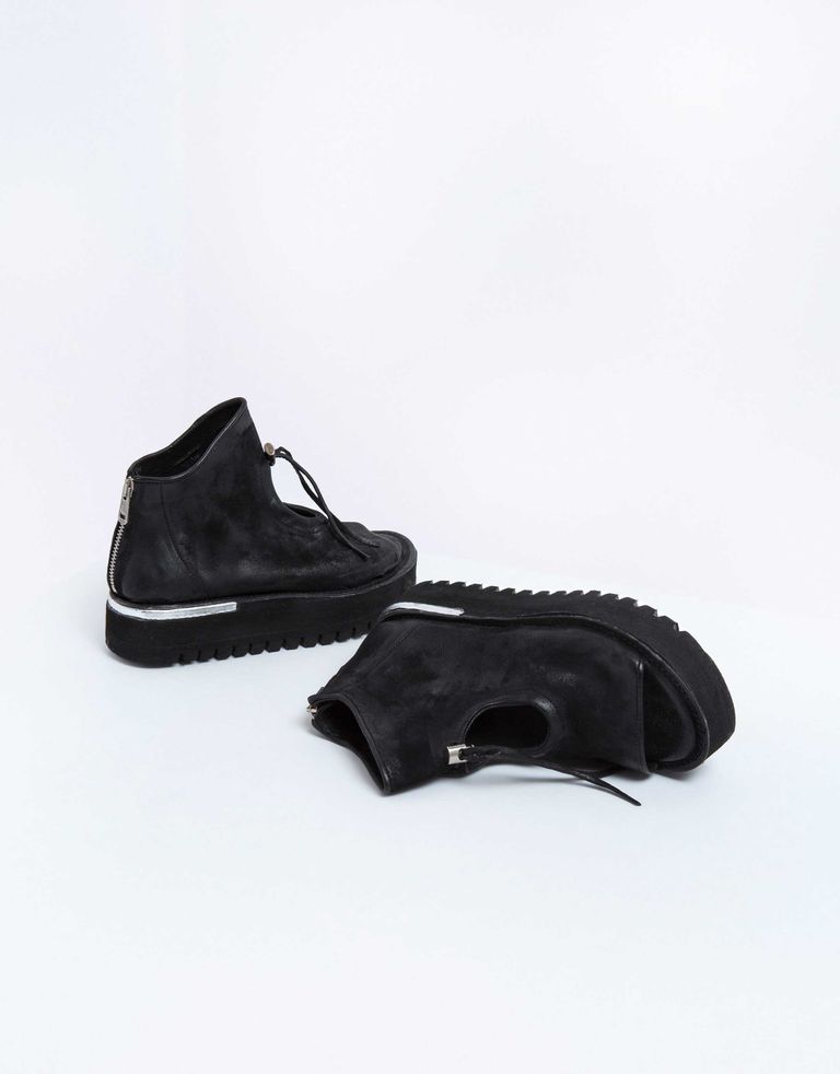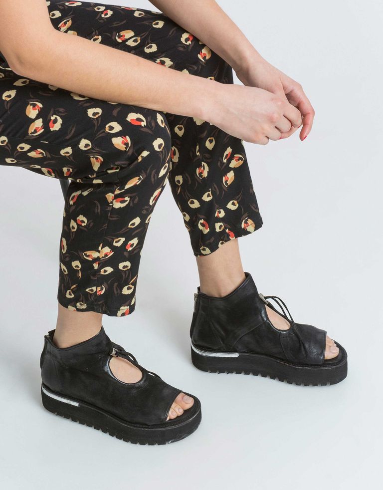 סנדלי פלטפורמה בווליום גבוה, עשויים עור בתוספת נגיעות של מטאל בסוליות.