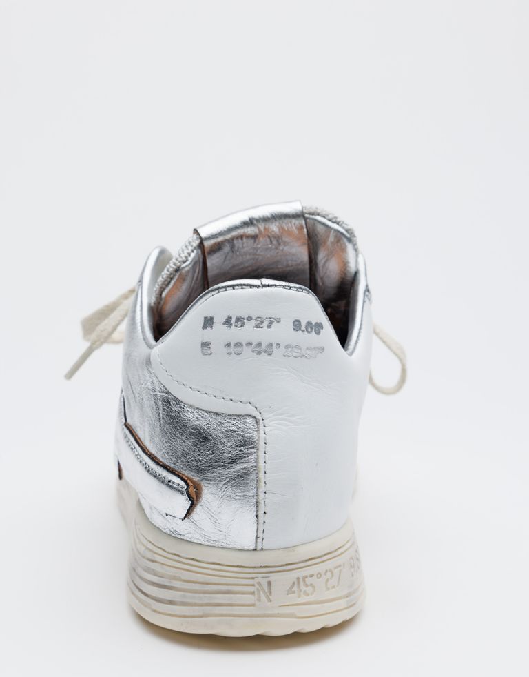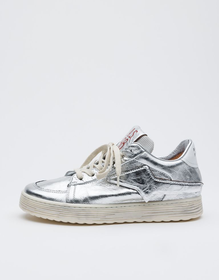 נעלי סניקרס מטאליות במראה יוזד, בתוספת סוליה רחבה ושרוכי כותנה.