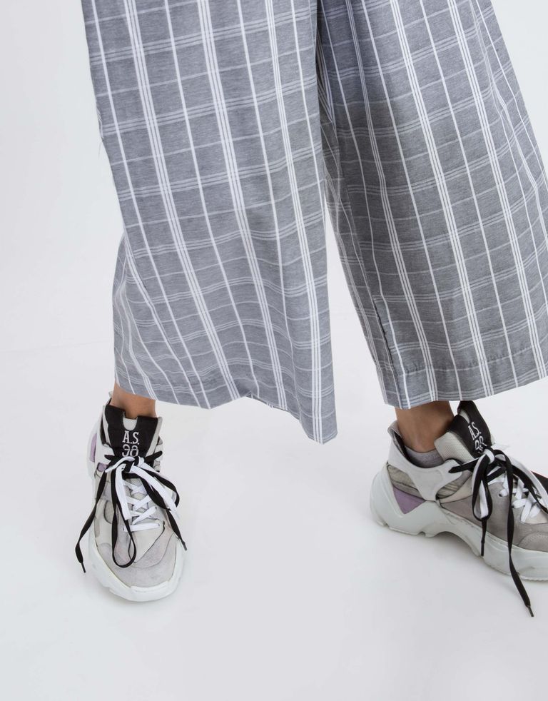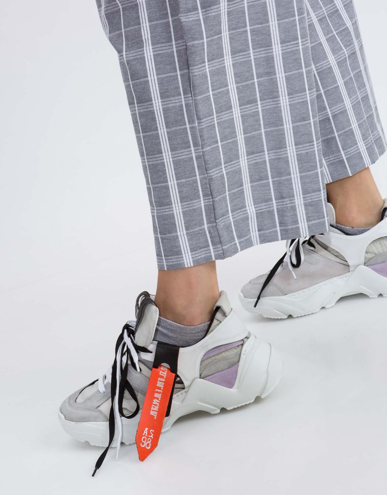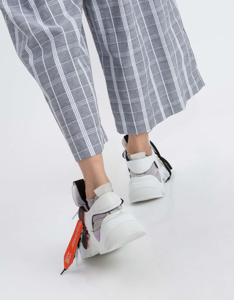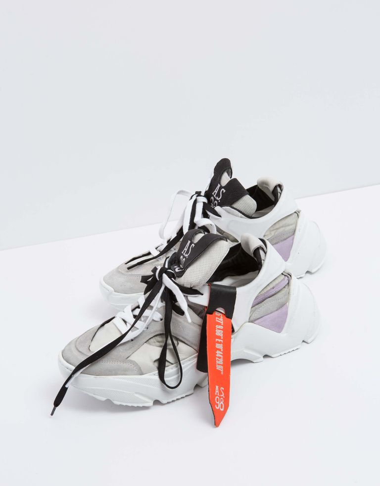סניקרס סופר צ'אנקיות עם שרוכים בשני צבעים ותווית לוגו בולטת.