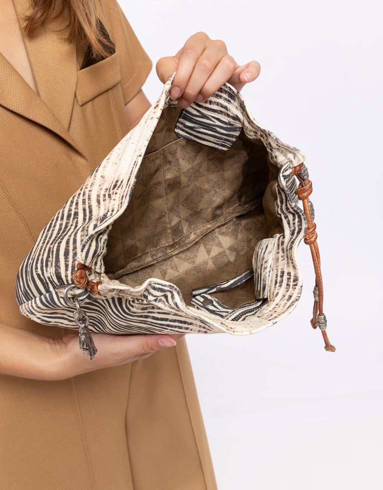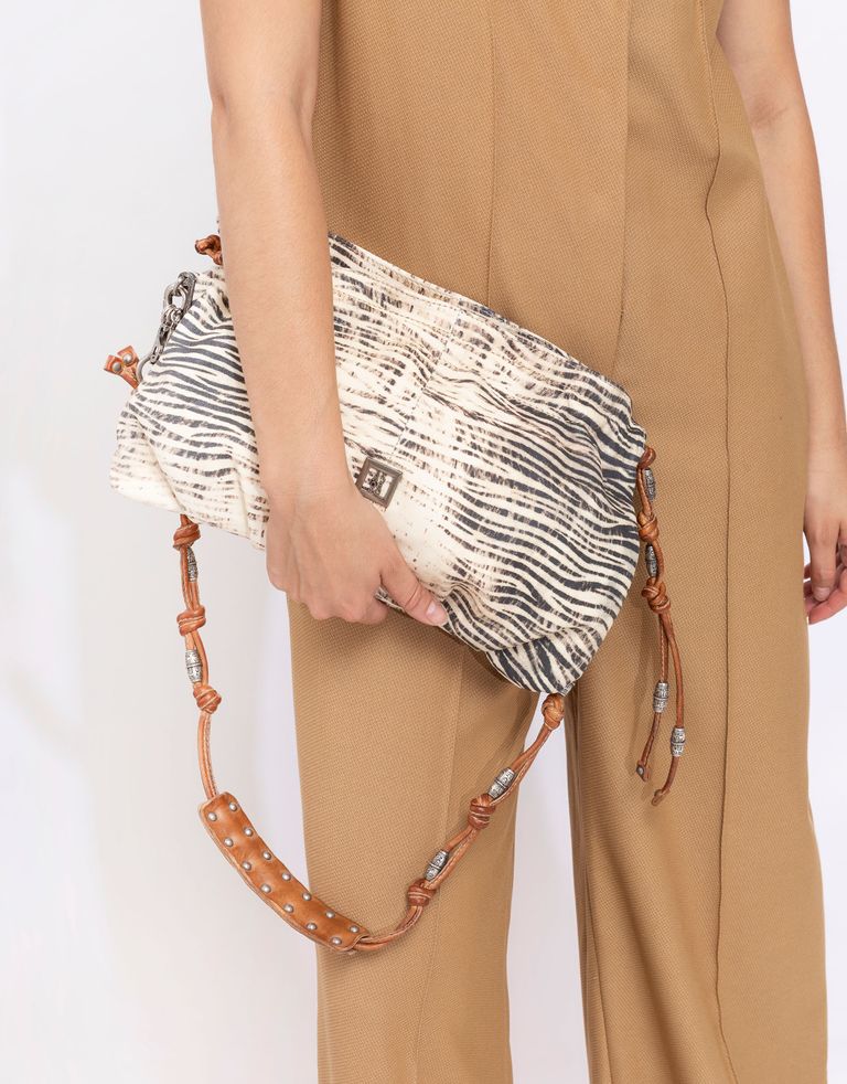 תיק מעור לנשים של A.S.98 התיק בגודל אידיאלי ולגמרי יתאים ליום יום וגם ממש נהדר ליציאה בערב כקלאץ'. אל תפספסי את הקשרים המקסימים ברצועה.