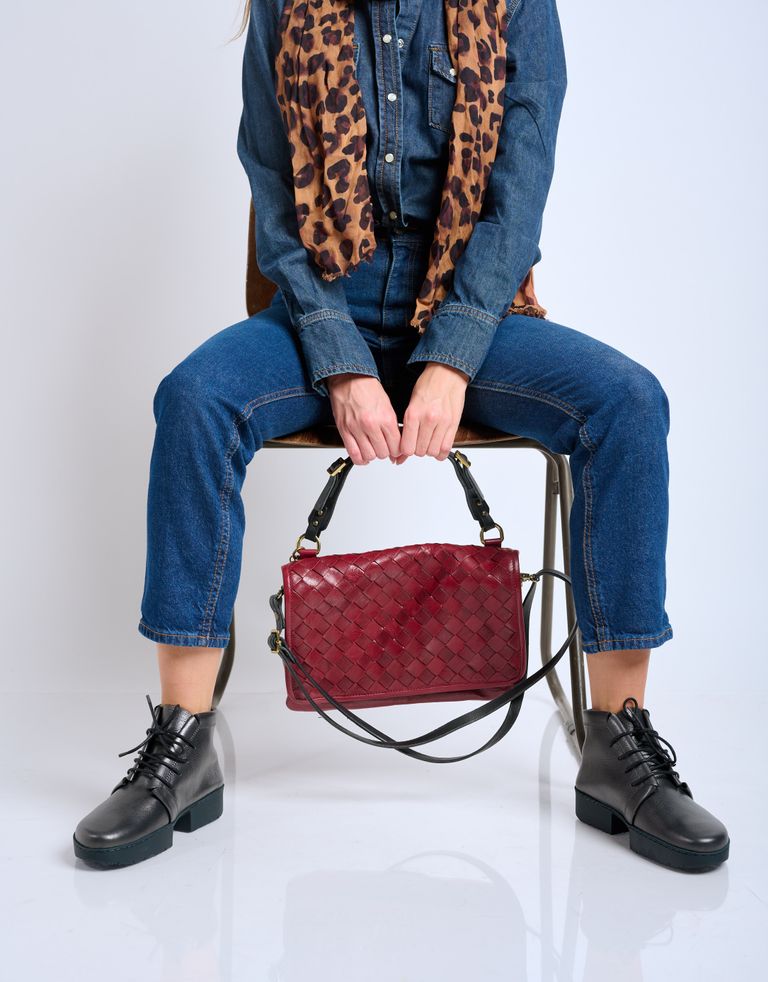 תיק שתי וערב מעור בסגירת מגנט. לתיק יש שני תאים מרכזיים וכיסים פנימיים, כולל אחד עם רוכסן. רצועת יד עם ניטים ומנעולים בקצה שלא מותיר מקום לספק – זה תיק עור מבית היוצר האיכותי של A.S. 98.