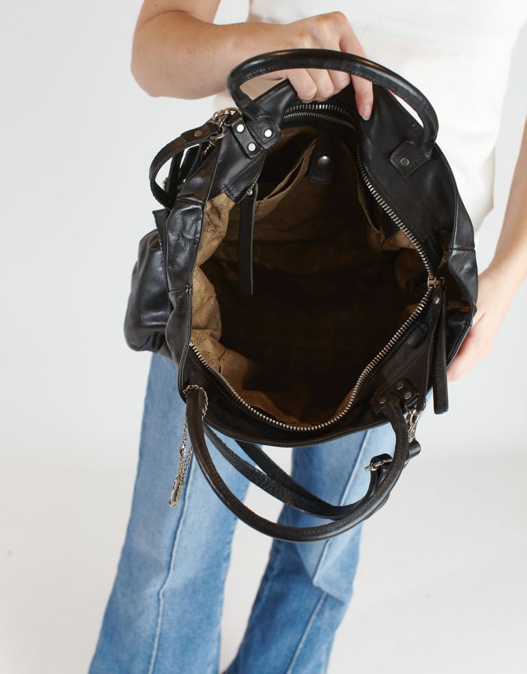 תיק עור גדול במראה וינטג'י ואלגנטי במיוחד. התיק נפתח באמצעות רוכסן לתא מרכזי גדול עם כיסים פנימיים ותא קטן וצר הנסגר עם רוכסן. את התיק אפשר לשאת ביד באמצעות הרצועות הקצרות, או על הזרוע או על הצד עם הרצועה הארוכה והמתכווננת הניתנת להסרה.