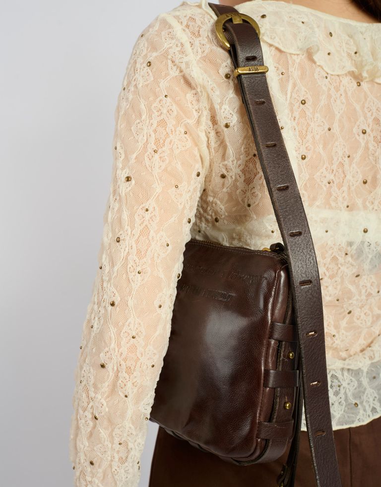 תיק עור במראה נוסטלגי ובגודל בינוני מושלם, עם רצועת יד ורצועת צד מתכווננת מעור. בפנים – תא מרכזי רחב, כיס עם רוכסן וכיסי אחסון קטנים. בקיצור, תיק שיעשה לך הרבה סדר.