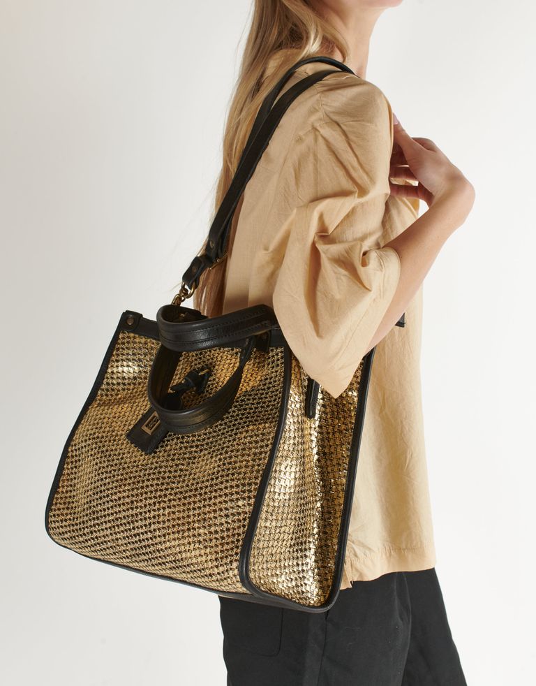 תיק עור מוזהב ומשגע. יש לו רצועות לנשיאה ביד או על הצד, תא מרכזי בסגירת רוכסן וכיסים פנימיים. וכמובן, הדיטיילס המושקעים שלא משאירים מקום לספק – זה תיק עור מבית היוצר האיכותי של A.S. 98.
