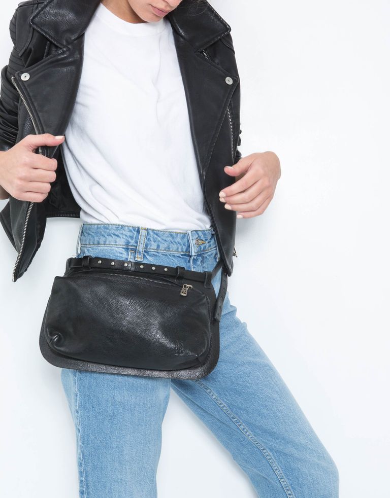 תיק פאוץ' מעור עם נגיעה של ניטים, שלמות!