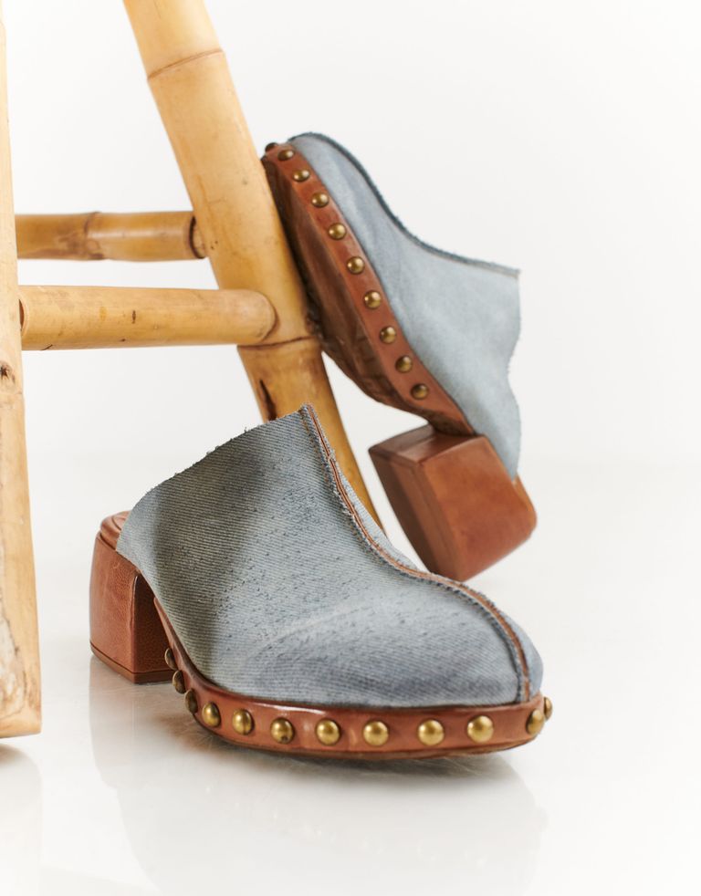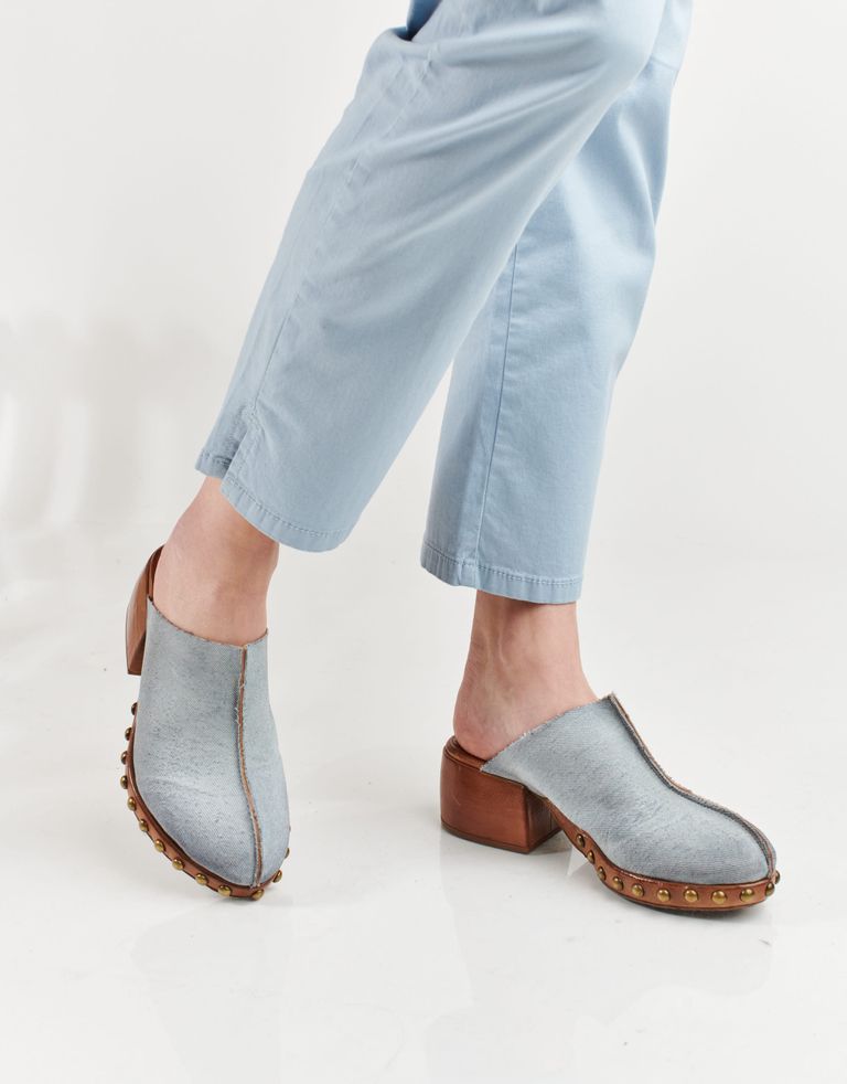 כפכפי עקב סגורים מקדימה בסגנון קלוגס, סופר מחמיאים וקוליים להחריד. לכפכפים תיפור מרכזי שעובר במרכז ועיטור ניטים לתוספת חספוס וסטייל.