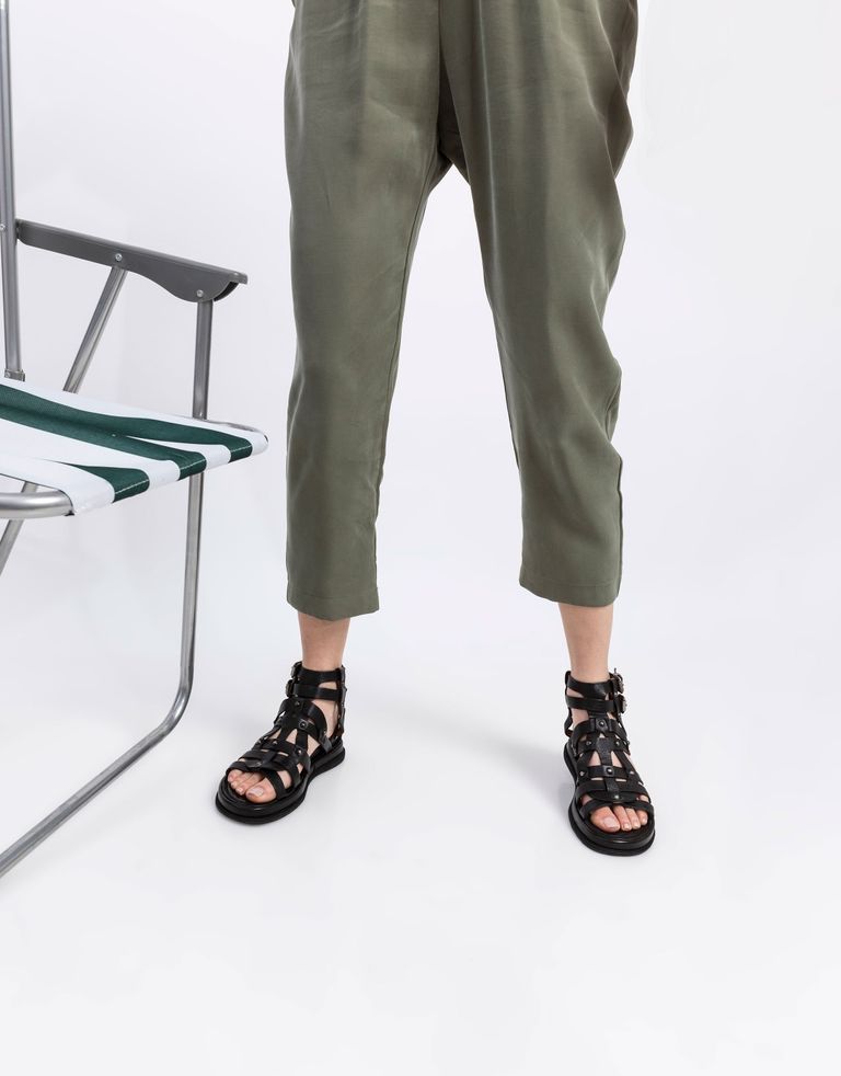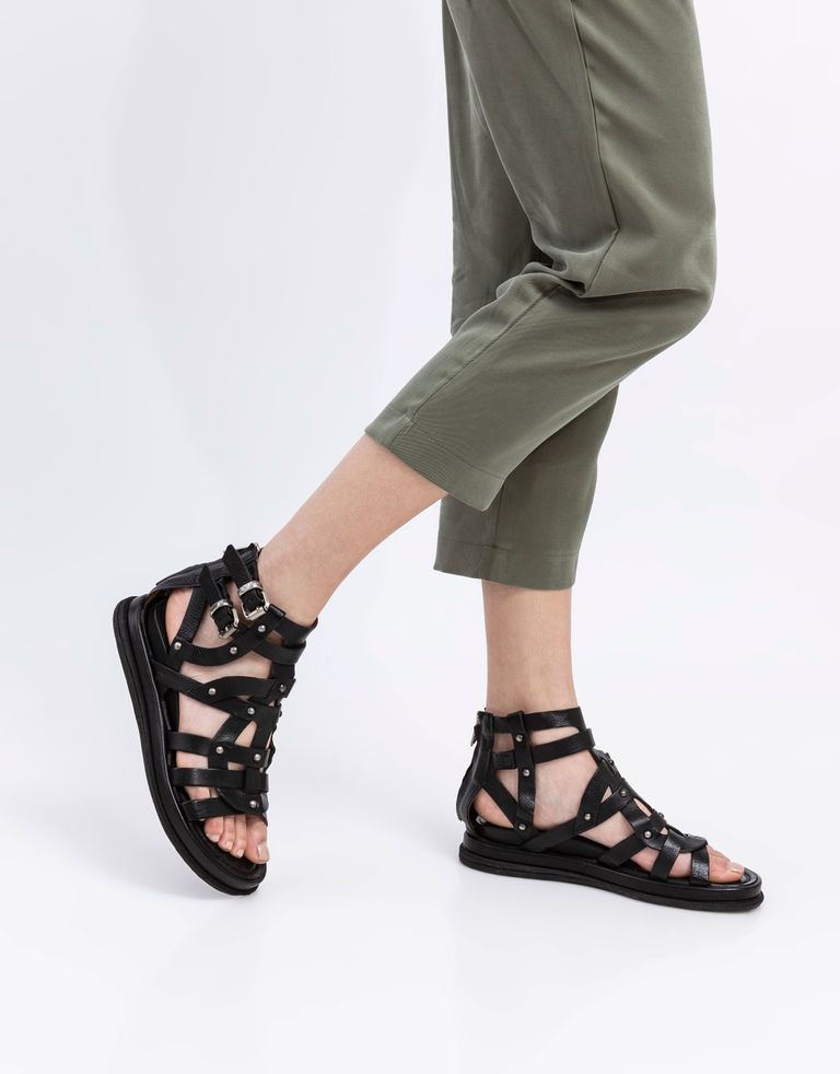 סנדלי רצועות וניטים POLA, זה רק נראה מורכב. הסנדלים מאובזרים בעקב רוקי עדין והם מעוצבים ממספר רצועות משתלבות. פשטות עם מגע של פאנק.