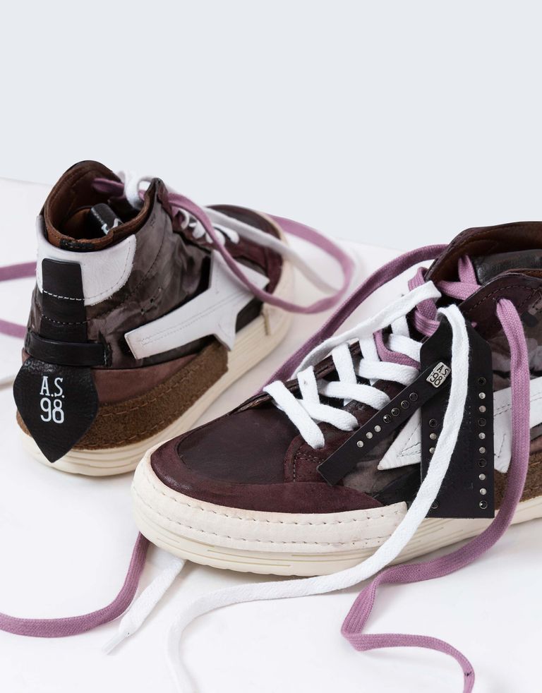 סניקרס גבוהות עם הרבה דיטיילז וטקסטורות. AS 98 אלופים בזה – לחבר יחדיו מלא חלקים לכדי נעליים מגובשות עם אמירה.