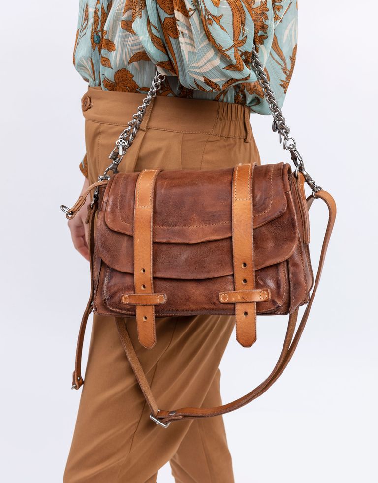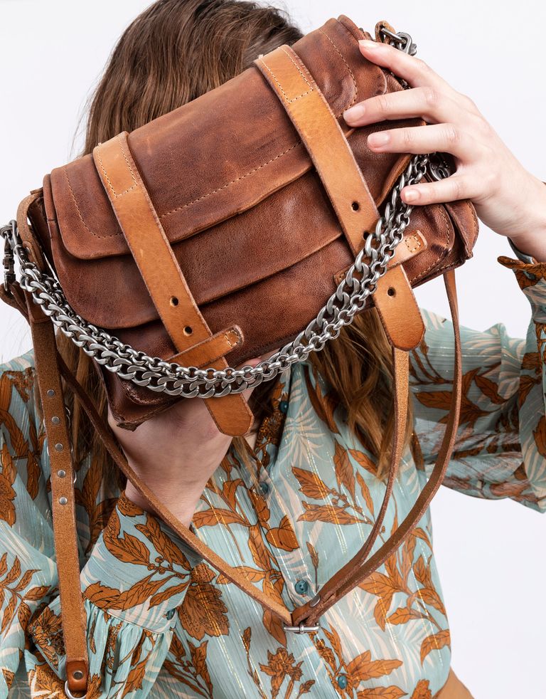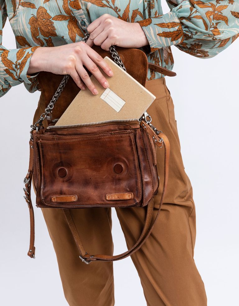 תיק עור קטן, נסגר באמצעות מעטפת מגנט כפולה, כדי שיהיה יפה כפליים. לתיק יש תא מרכזי עם כיסים בסגירת רוכסן (הכי בטוח) והוא מאובזר בשתי צורות נשיאה – רצועת עור מתכווננת ליום ורצועת שרשרת ידנית ללילה. ועכשיו להיפך.