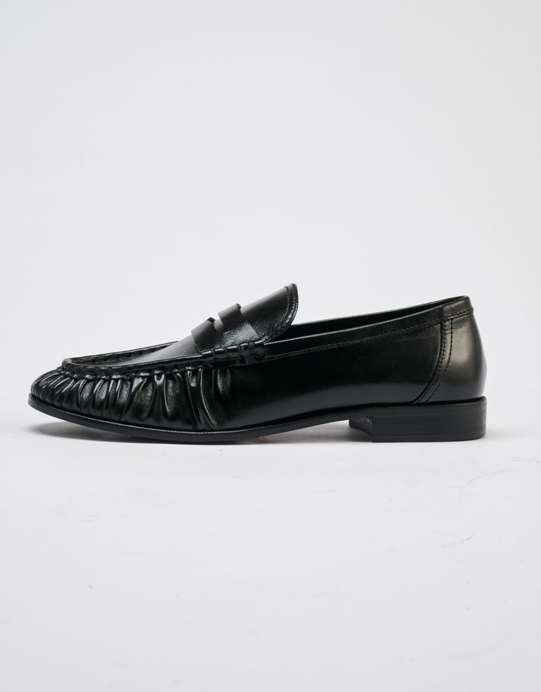 מוקסינים שטוחים מעור מלאים בדיטיילז: בד עם טקסטורה, פרנזים ואבזמים. נעליים משגעות שמרגישים שהושקעה בהן מחשבה.
