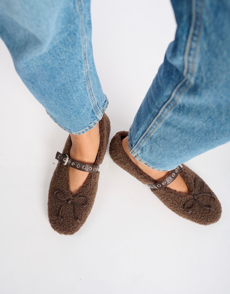 נעלי בובה שפיציות עם עיטור במראה של אבזם. אלגנטיות, קלאסיות אבל עם טוויסט.