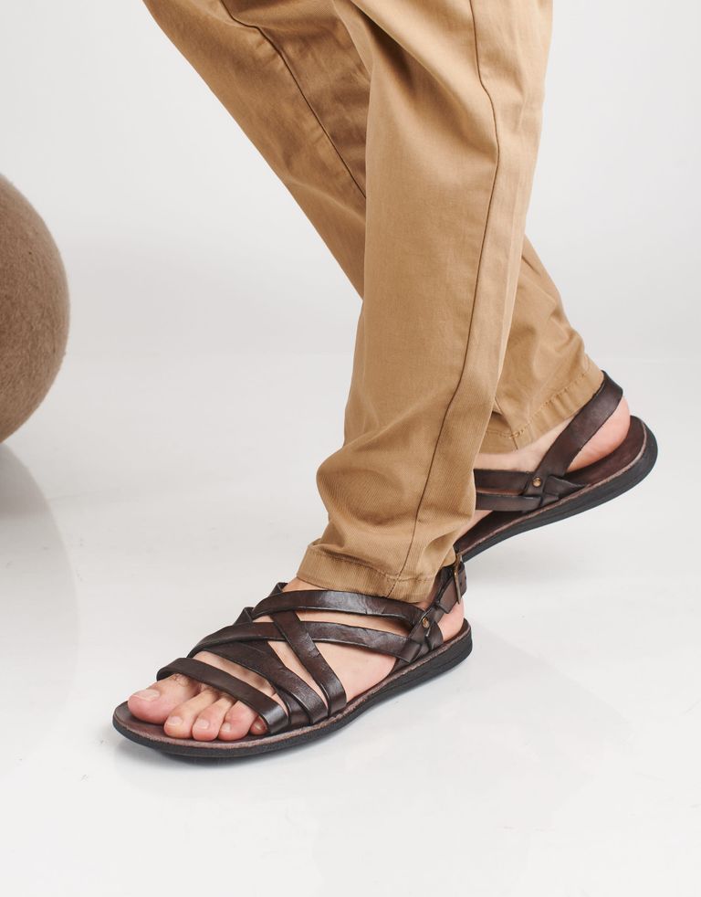 סנדלי גברים בעיצוב וינטג'י, נצבעים בשיטה טבעית ייחודית, בזכותה מקבל כל זוג מראה ייחודי משלו, מושלם-לא מושלם. הסנדלים עשויים מעור לא מעובד בגימור טבעי.