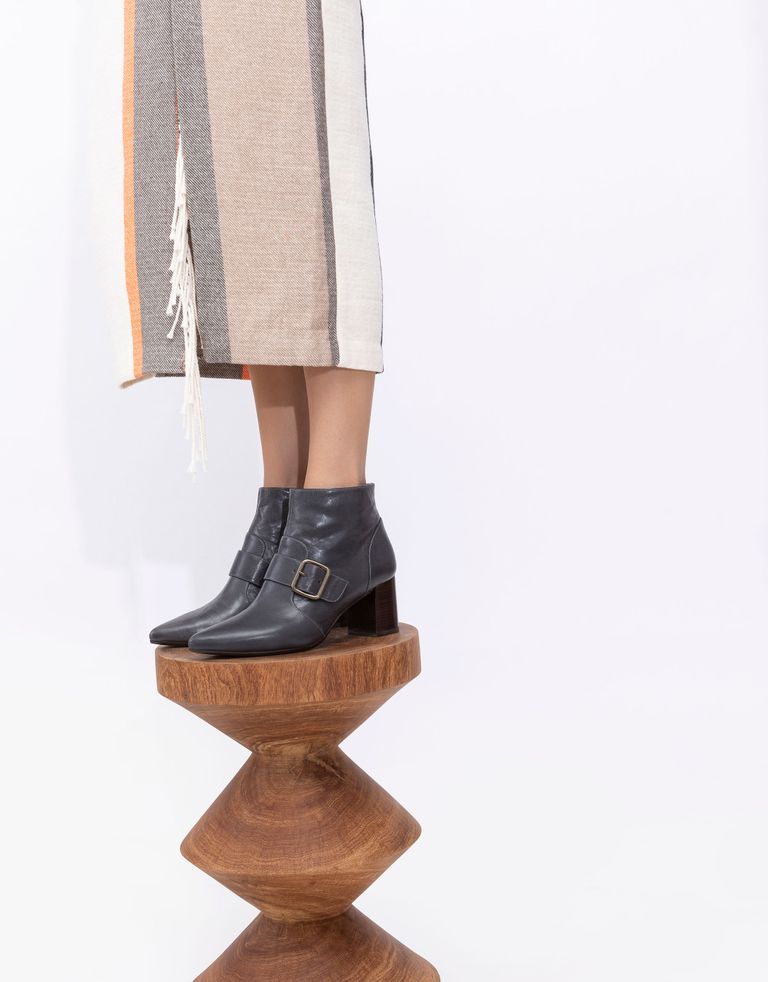 מגפוני עקב עם אבזם QUENCA, אם היתה תמונה במילון למילה "אלגנטיות" היא היתה נראית בדיוק ככה. שפיציים אבל בעדינות, עשויים מעור רך ומאובזרים בסוליית עור עם גומי, למניעת החלקות.