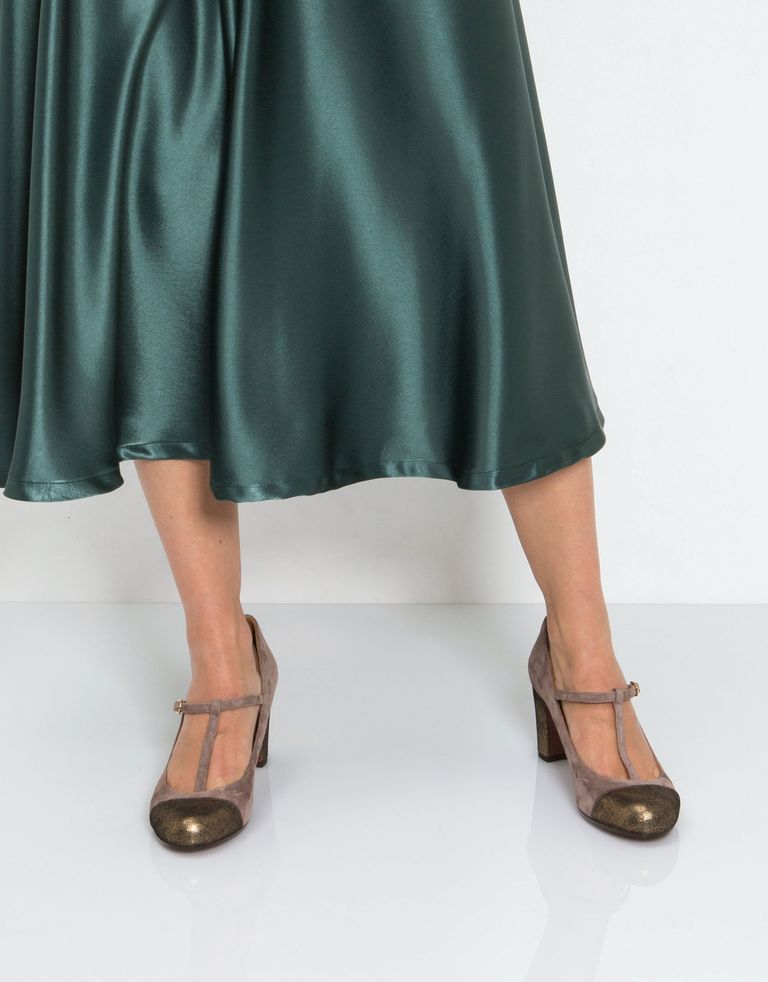 נעלי סירה בשני צבעים עם סגירת אבזם עדינה.
