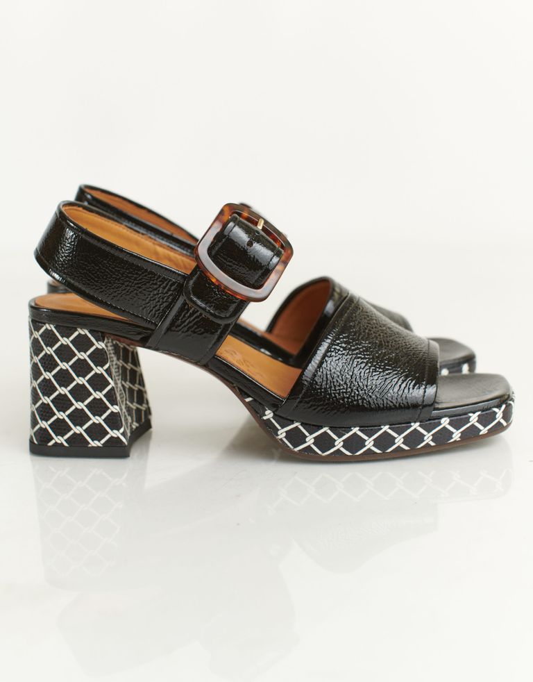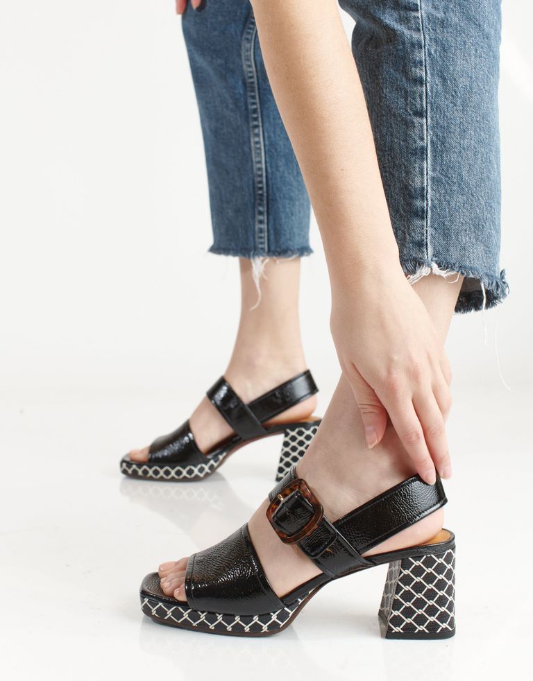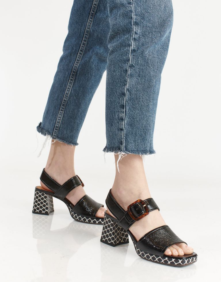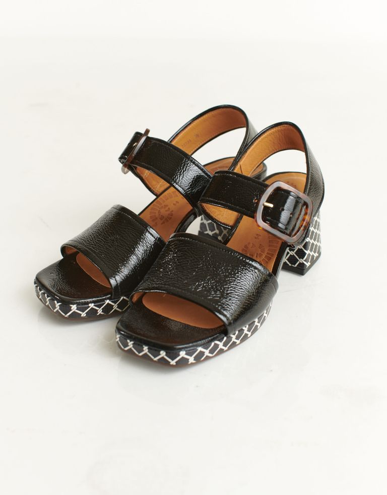 סנדלים מעור מבריק, מאובזרים בעקב צ'אנקי גבוה (אך לא מדי) וחרטום מרובע. והכל באווירה סופר-פיין וסופר-פאן.