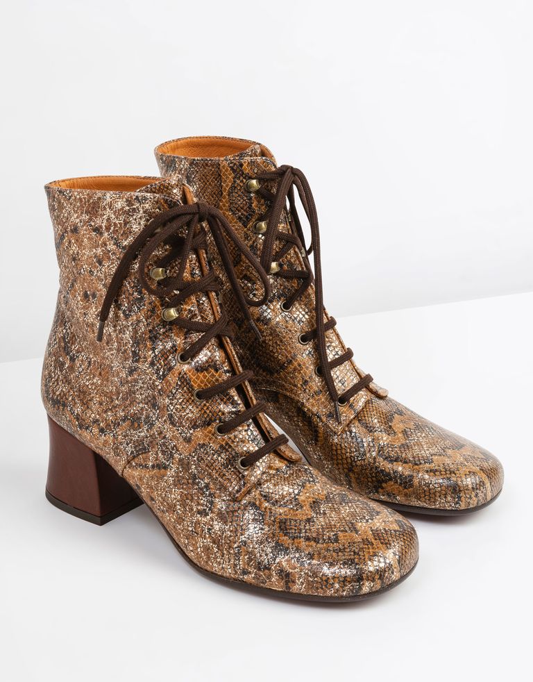 מגפוני נחש עם שרוכים MALIA, קצת ארס לא מזיק, במיוחד כשהוא מגיע בכזה טוב טעם. המגפונים עשויים עור רך, יש להם חרטום מעוגל ועקב בגובה אידיאלי. סוליית הנעליים עשויה עור ומעליו גומי, למניעת החלקות.