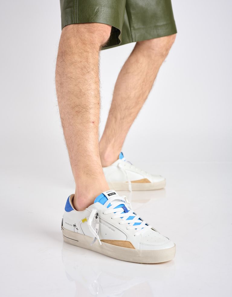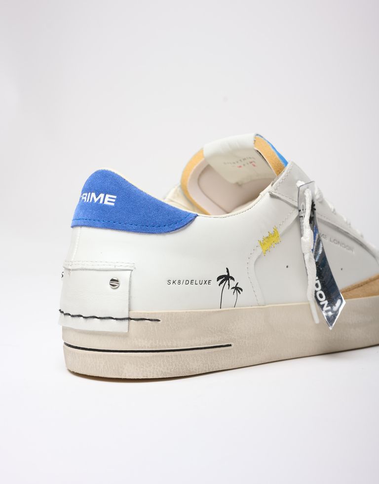 נעלי סניקרס נמוכות, משלבות טקסטורת, צבעים, כיתובים ודיטיילס שרוכים. קריים לונדון, מסוליה ועד עקב.