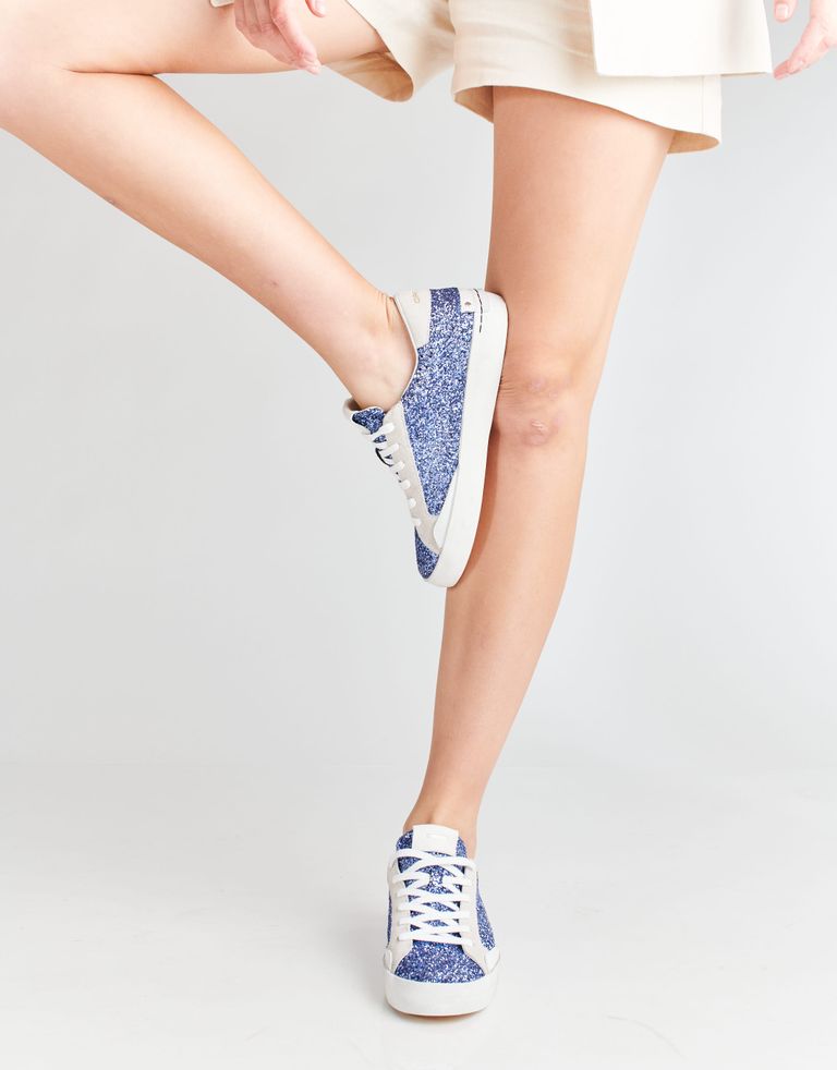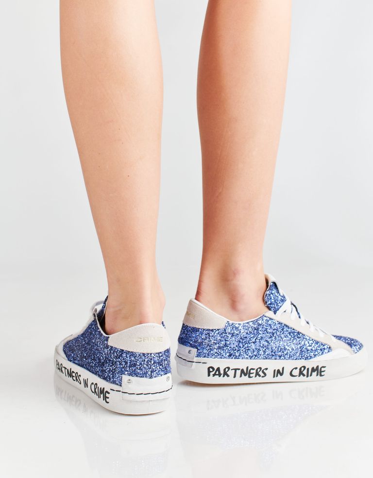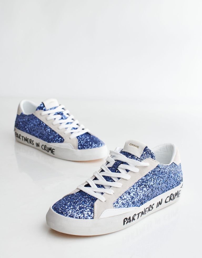 נעלי סניקרס מעור איטלקי משובח בשילוב נצנצים, טקסטורות, טלאים, שני ניטים מאחור וכיתוב Partners In Crime על הסוליה. הכי רוקנרול.
