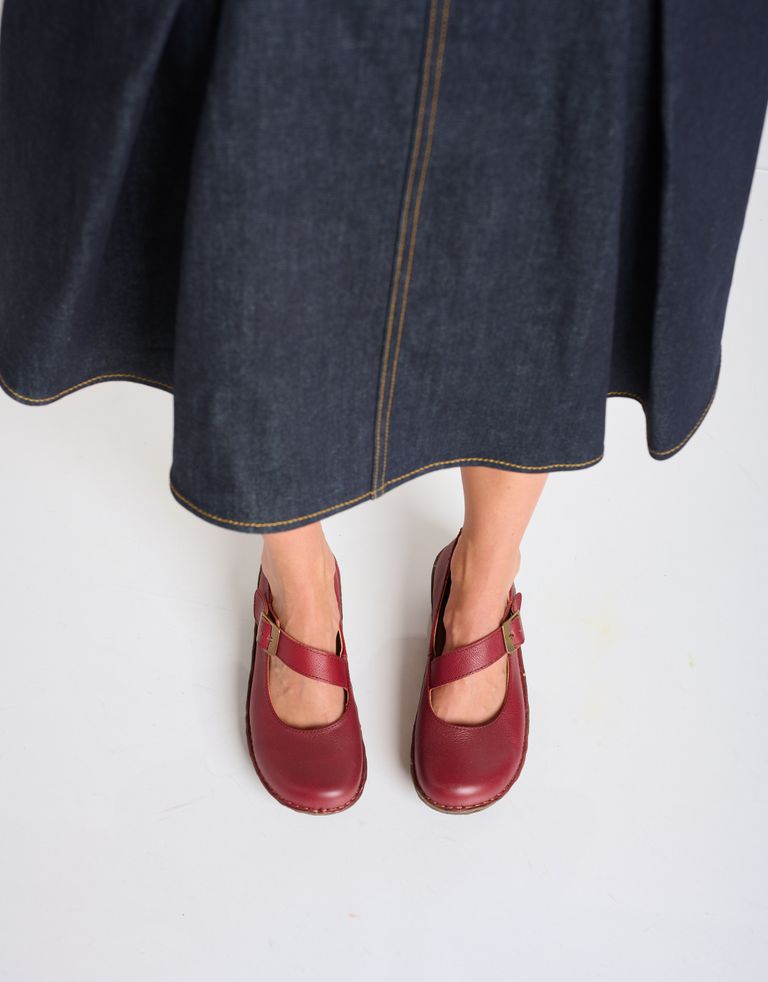 נעלי עור בסגנון מרי ג'יין, בהשראת עץ החיים מהמיתולוגיה הנורדית, שמסמל הרמוניה וחיבור לטבע. עיצוב אורגני עם סוליה מגומי ממוחזר, שמבטיח נוחות וקיימות.