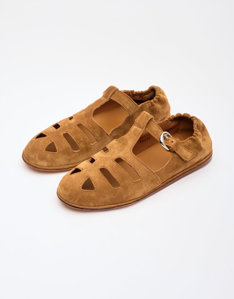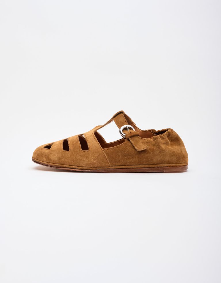 סנדלי רצועות מעור בעיצוב נינוח, הצ'ארם האיטלקי בילט אין. הנעליים מיוצרות בבית המלאכה המוקפד של המותג באיטליה.