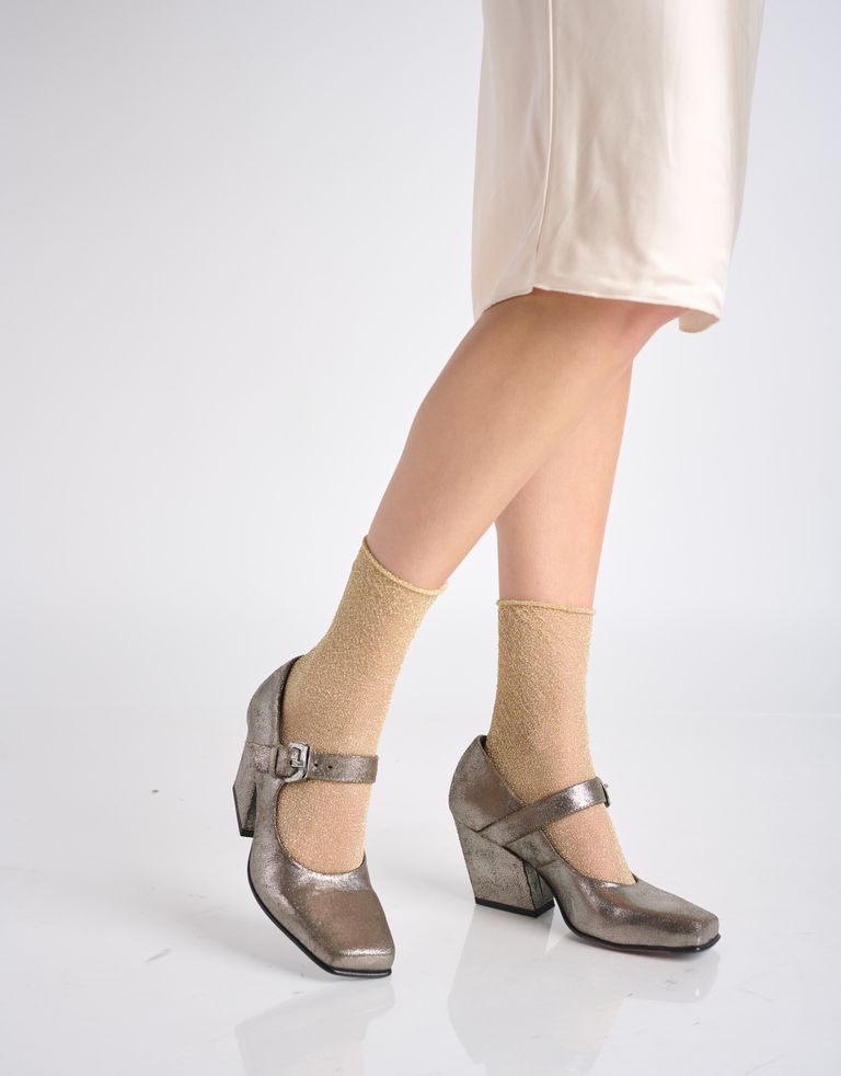 נעלי מרי ג׳יין עם טוויסט בצורת עקב עבה ומשופע בסגנון בוקרים וסגירת אבזם, טייק מחוספס על המרי ג׳יין הקלאסיות.