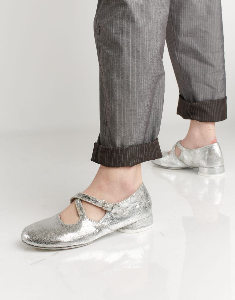 נעלי עור עם חרטום מעוגל, מאובזרות בעקב קטן ונסגרות באמצעות אבזם. נעלי נשים אלגנטיות ומדויקות, בראוויסימו ארנסטו.