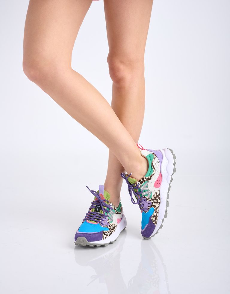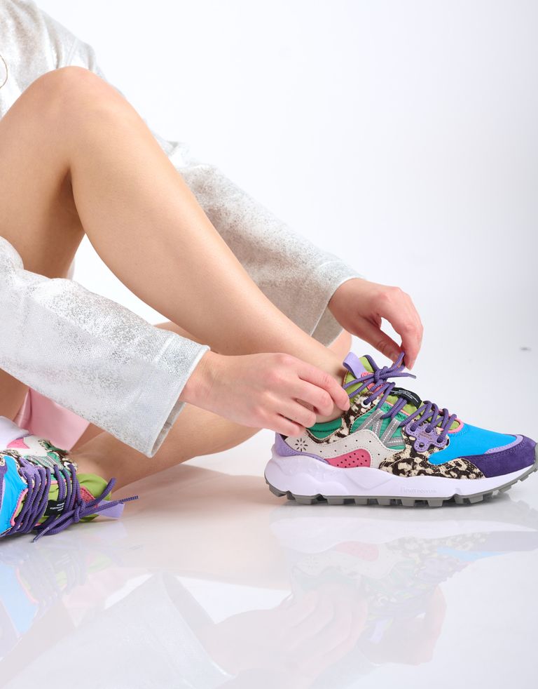 נעלי סניקרס שבאו לשמח. שילוב של צבעים עזים, טאץ' פרוותי מנומר, סרטים צבעוניים ודיטיילז משדרגים. הסניקירס עשויות בד נושם, עור ורפידת שעם אנטיבקטרילית. שלמות
